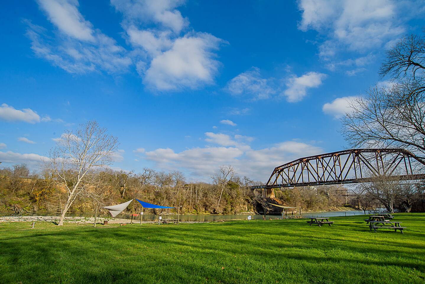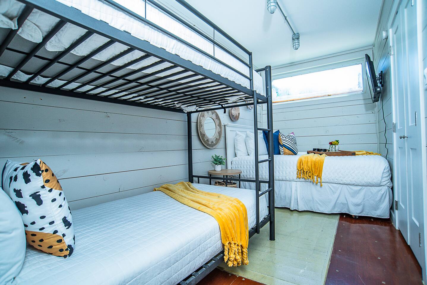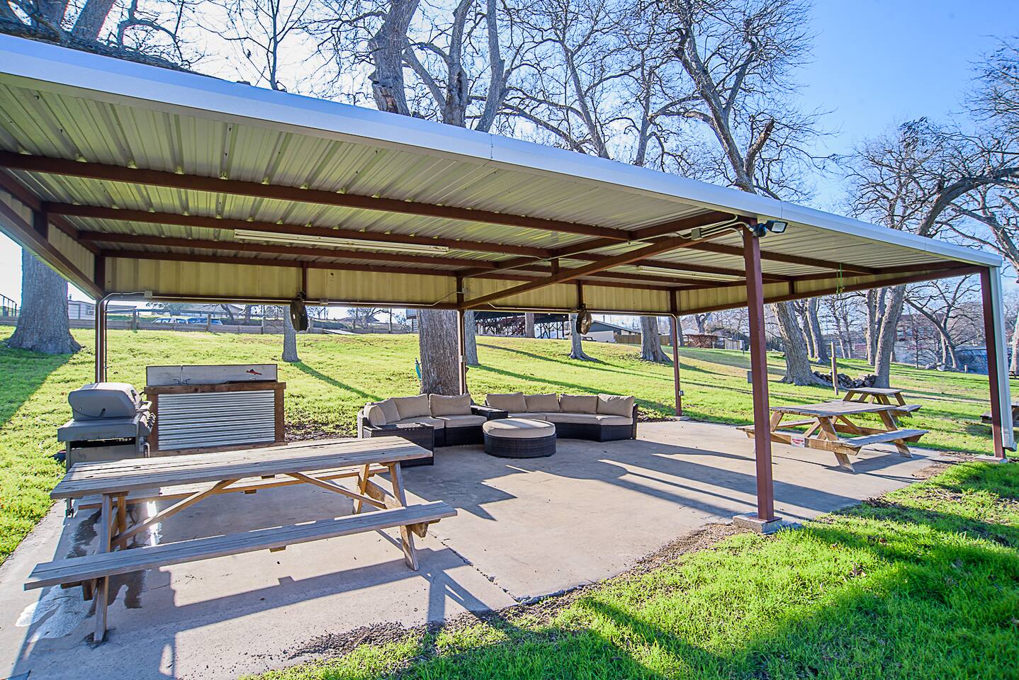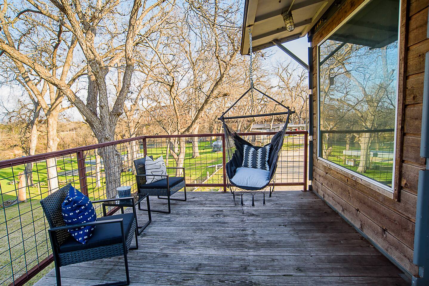 Work Groups and Business Travelers Always Welcome! HIGHLIGHTS - 2 bedrooms / 2 bathrooms / 850 square feet - Sleeps 6 - Included FREE: 3 kayaks, 2 stand up paddle boards and life jackets - Shared extensive outdoor space with several grills, hammocks, covered open-air dining / lounge with sink and gas grill, fire pits, fish carving station and outdoor shower - WiFi - Roku TV's - Full kitchen w/ full size and countertop appliances - Washer/dryer - Centrally located to New Braunfels, San Marcos, San Antonio, Austin SLEEPING ARRANGEMENTS - Primary bedroom - 1 queen bed - adjoined bathroom - Secondary bedroom - 1 twin over twin bunkbed and 1 Queen Bed - adjoined bathroom **175 pound weight limit on top bunks** Water levels shown in pictures are current levels with Lake Placid Dam down for repairs. Water is 3 to 6 ft in and is perfect for swimming, tubing, kayaking and paddle boarding. The river bed gently slopes into the river, so you can easily access the water. Water stays at pretty consistent level with a constant feed from the Canyon Lake Reservoir. Be sure to bring your RIVER SHOES!!!