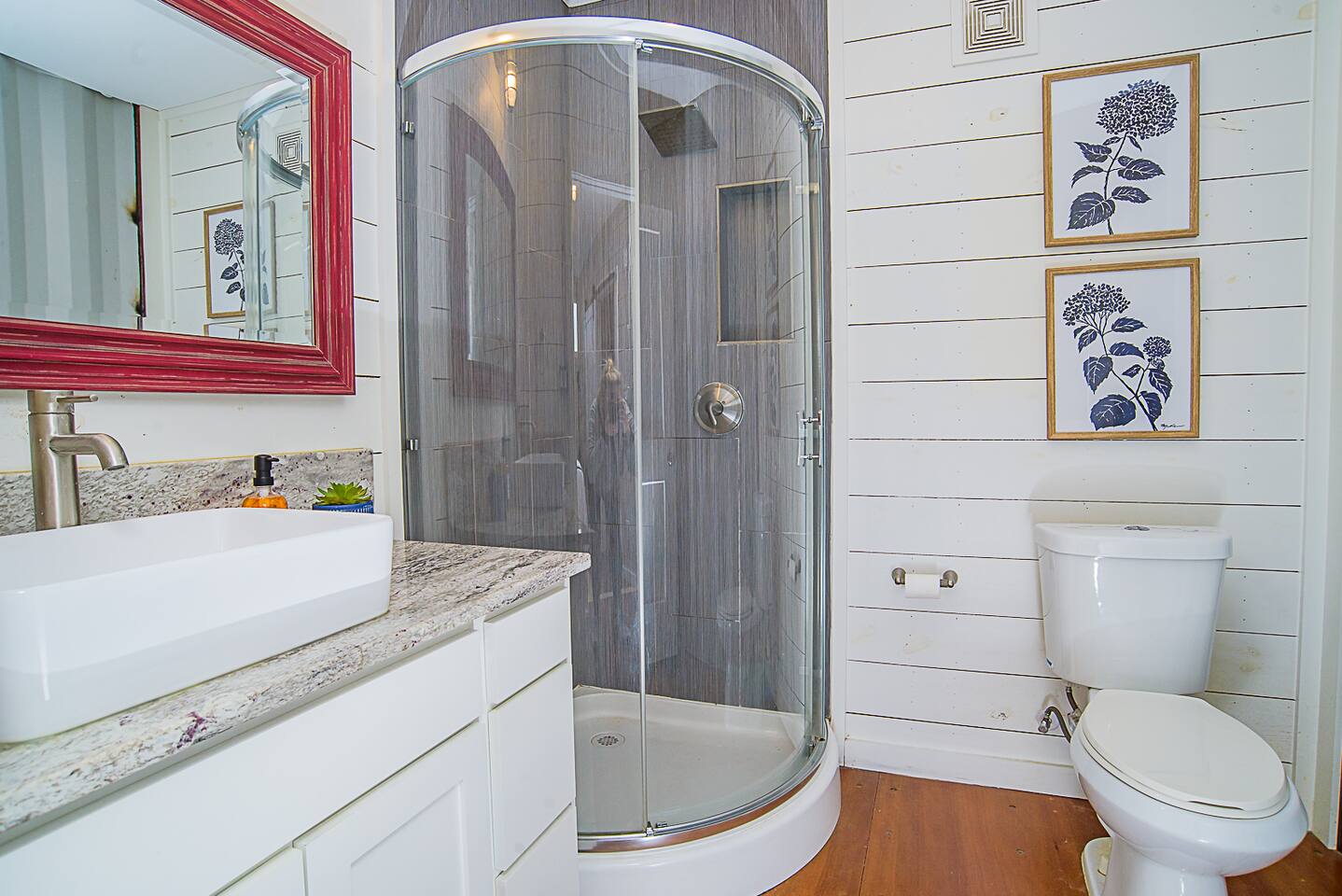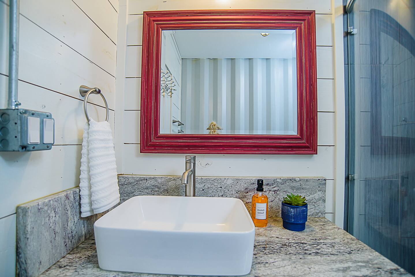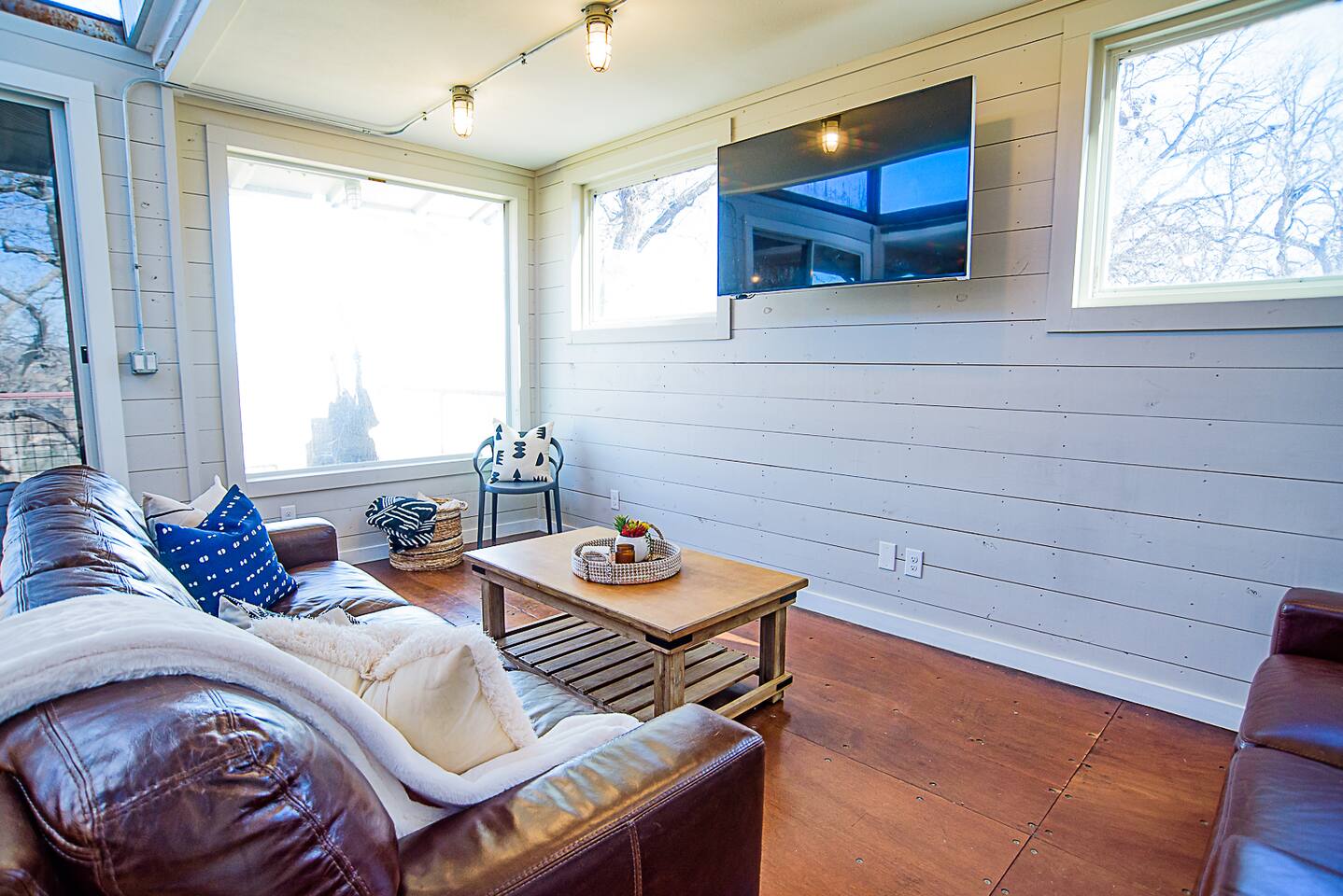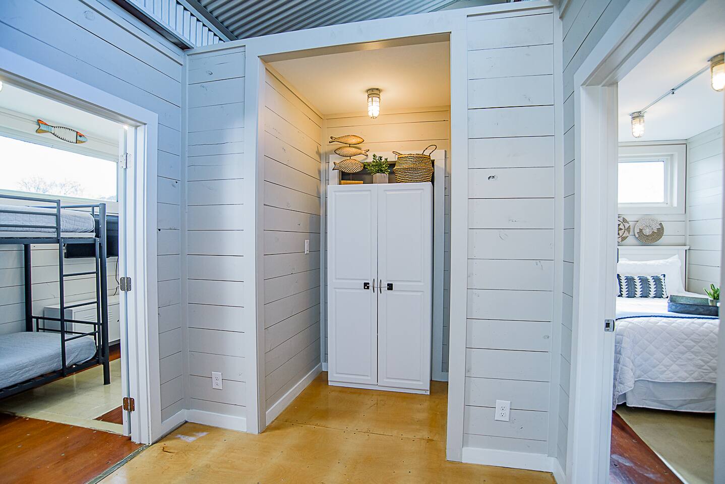 Welcome to Side A at Dam Camp! One of two container homes on a 3 acre property, this spacious waterfront home is located at the Lake McQueeney Dam on the banks of the Guadalupe River. Enjoy kayaking, paddle boarding, sitting by the fire, relaxing in a hammock, an outdoor shower and fishing at this relaxing retreat. Dam Camp Side A is short drive (10 miles) to Schlitterbahn Waterpark, Landa Park, Downtown New Braunfels, Comal River, Guadalupe River, and Texas's oldest dance hall, Gruene Hall.