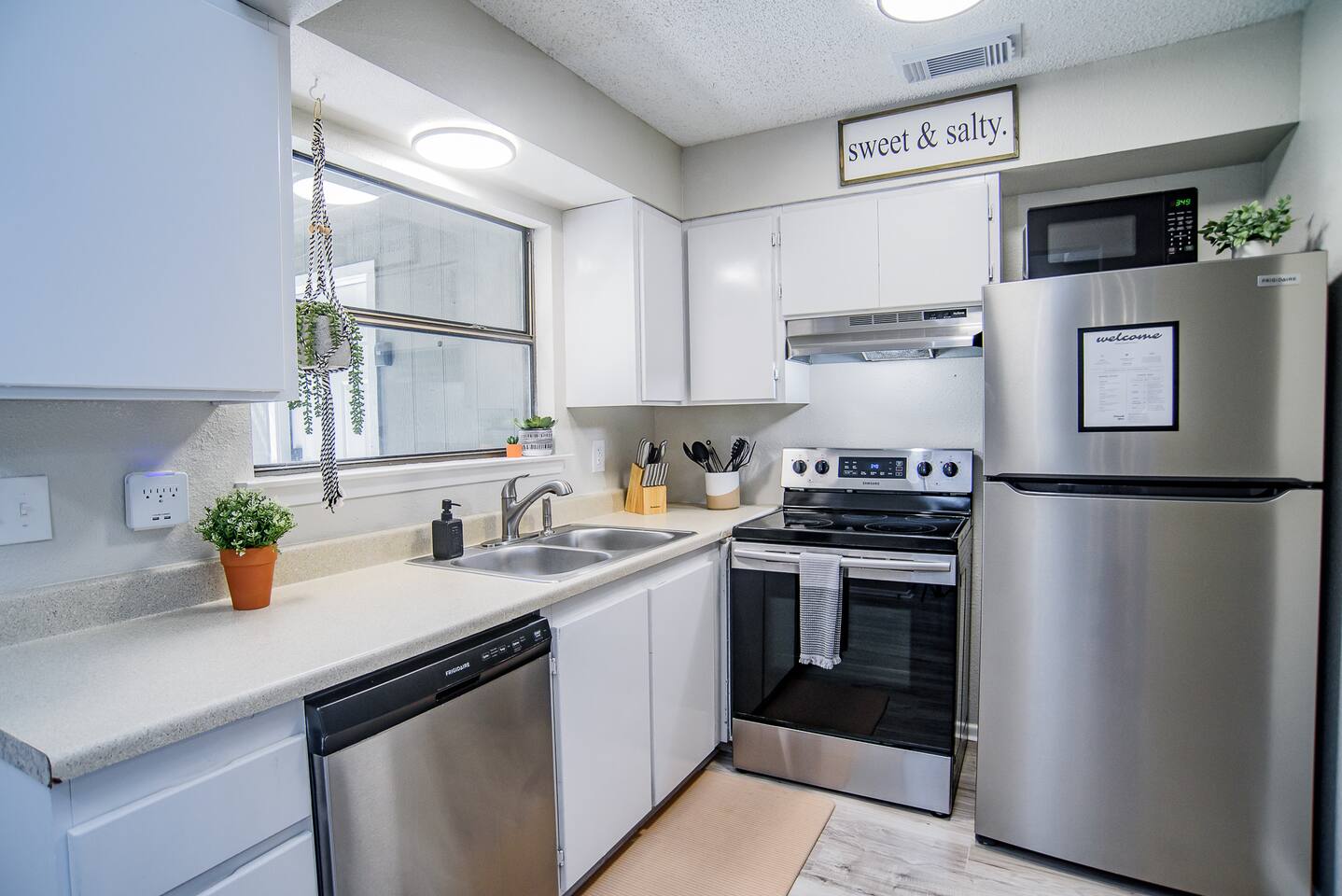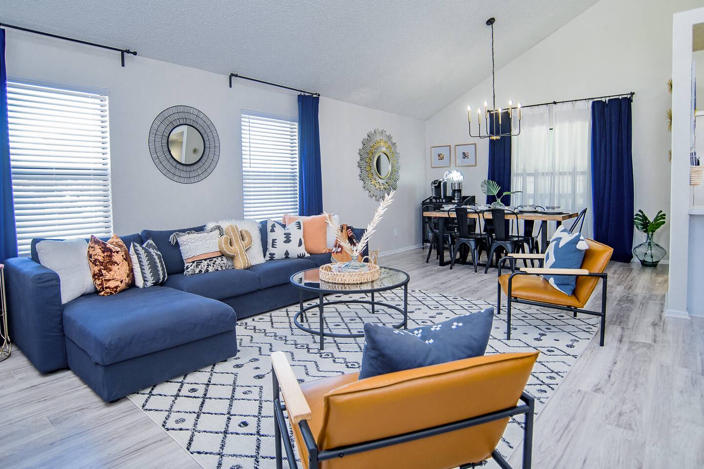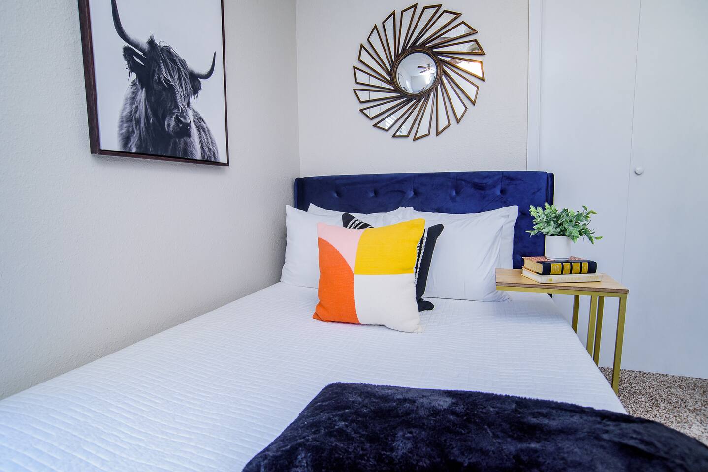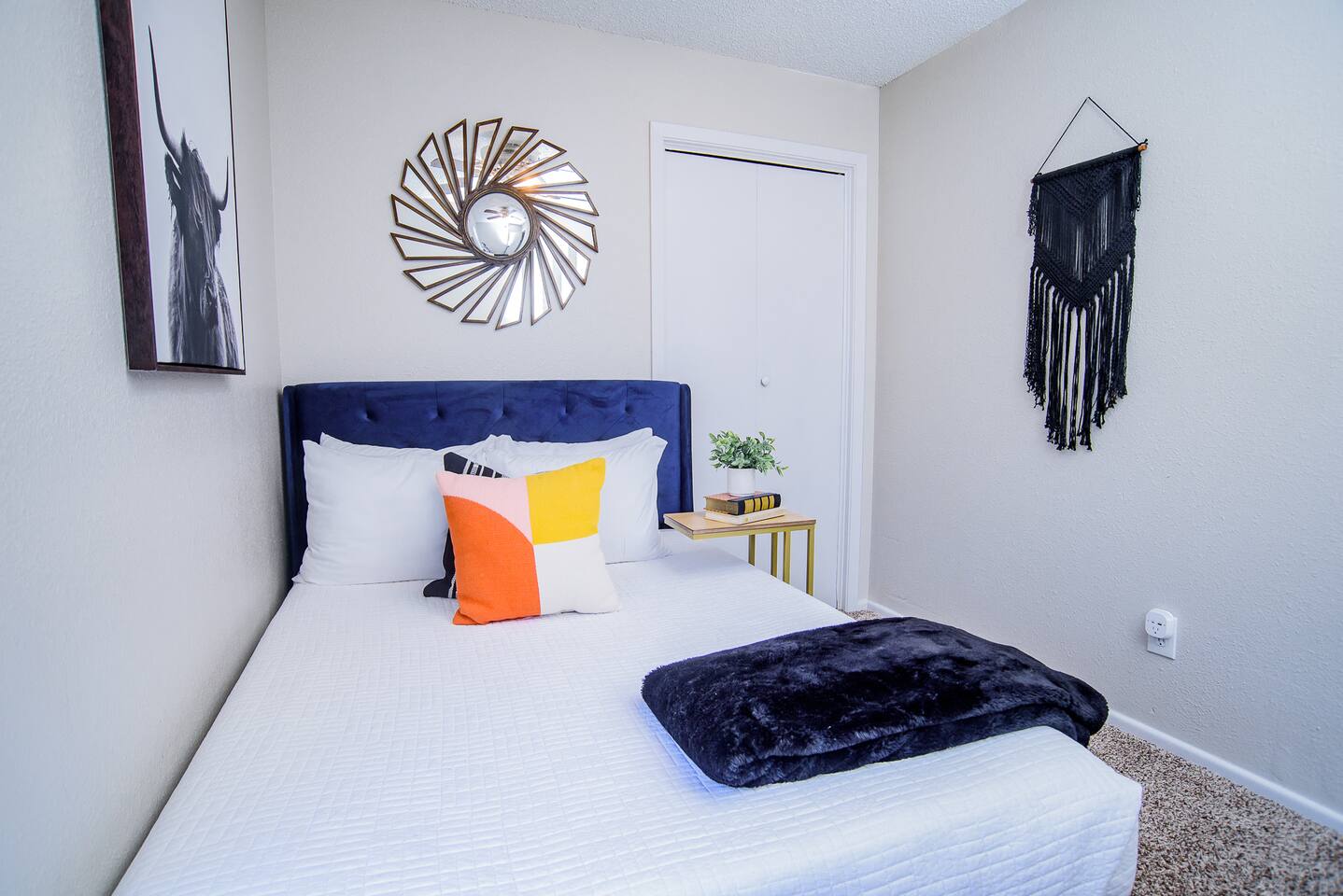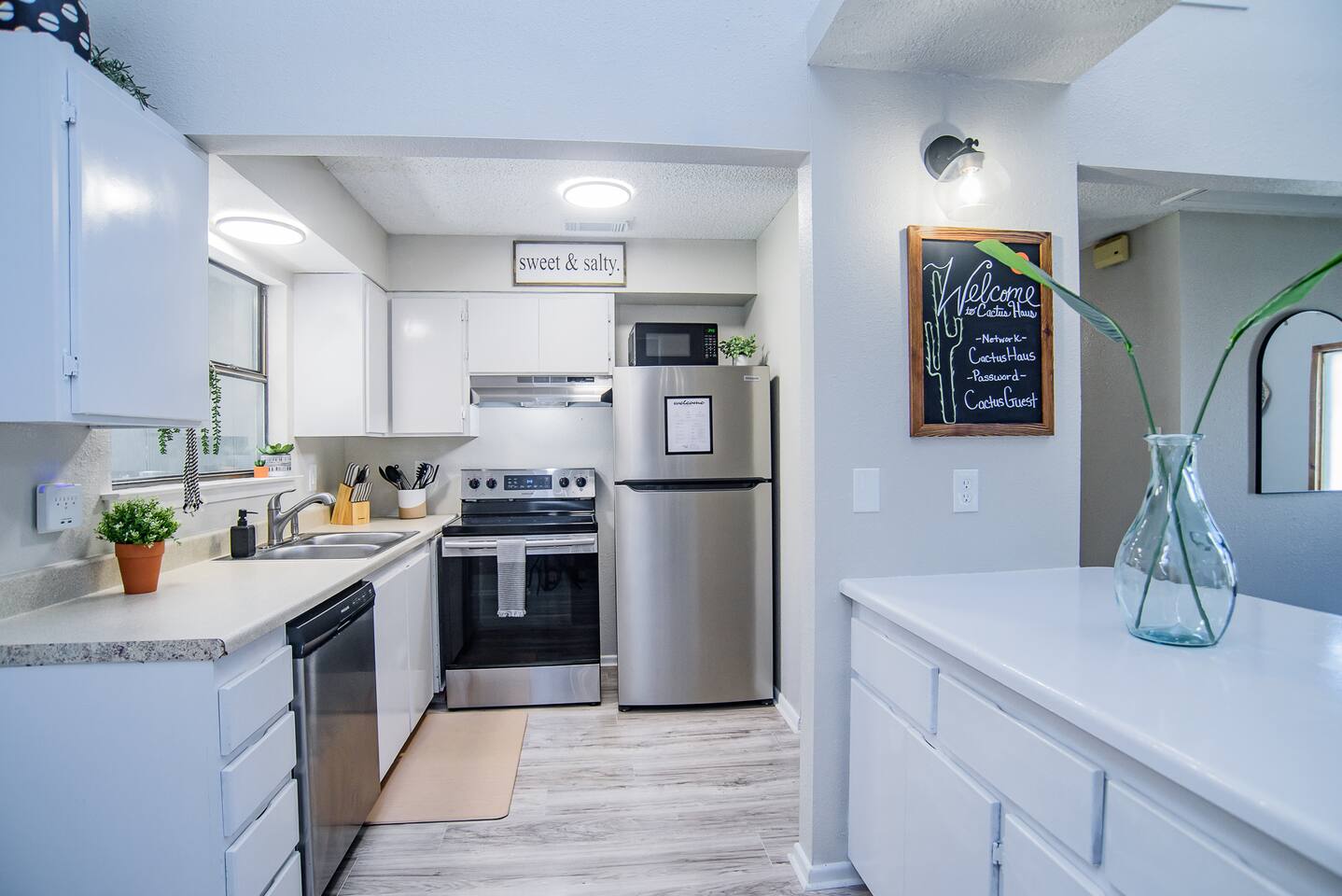 HIGHLIGHTS - 3 bedrooms / 2 bathrooms - Sleeps 6 - Large Spacious Gated Backyard, Fire Pit, Corn Hole, Yard Yahtzee, Board Games, Charcoal Grill, Hammock and Chair Hammocks, Coffee Bar, Record Player, High Chair and Pack-in-Play. SLEEPING ARRANGEMENTS - Primary bedroom - 1 king bed - adjoined bathroom - Roku TV - Secondary bedroom - 1 queen bed -Third bedroom - 1 double bed -Extra air mattress in living room. Introducing Cactus Haus, a modern Texas decorated home located in the charming city of New Braunfels, Texas. Situated on a spacious half-acre lot just outside the city limits, our property offers a peaceful and serene setting while still providing easy access to all the attractions and amenities in the area. Conveniently located just 5 miles from Downtown New Braunfels, 6 miles from Schlitterbahn Waterpark and the beautiful Comal River, and 9 miles from the historic Gruene district, our home is perfectly situated for you to explore and enjoy everything the area has to offer. The open floor plan of our home is designed to provide ample space and comfort for a single family or a group of friends. Whether you're on a family vacation, a weekend getaway, or a long-term stay for work, our home has everything you need to feel right at home. The master bedroom features a comfortable king-size bed, ensuring a restful night's sleep. Outside, you can relax and unwind in the chair hammocks or gather around the fire pit for cozy evenings under the stars. Stay connected with fast WIFI throughout the property, and enjoy your morning coffee at our convenient coffee bar. We also welcome work groups and families, offering amenities to accommodate their needs. With ample parking space for trailers and boats, our property is perfect for those who want to explore the nearby Schumann's Beach Boat Ramp and enjoy access to Lake Dunlap. Whether you're seeking adventure, relaxation, or a productive work stay, our Airbnb property in New Braunfels, Texas, provides the ideal base for your stay. Book now and experience the best of what this charming city has to offer.