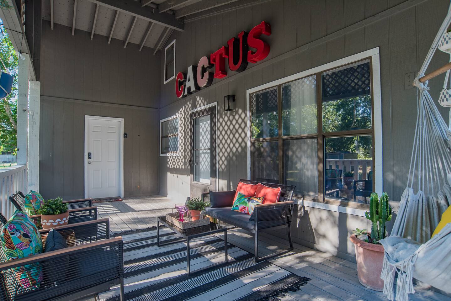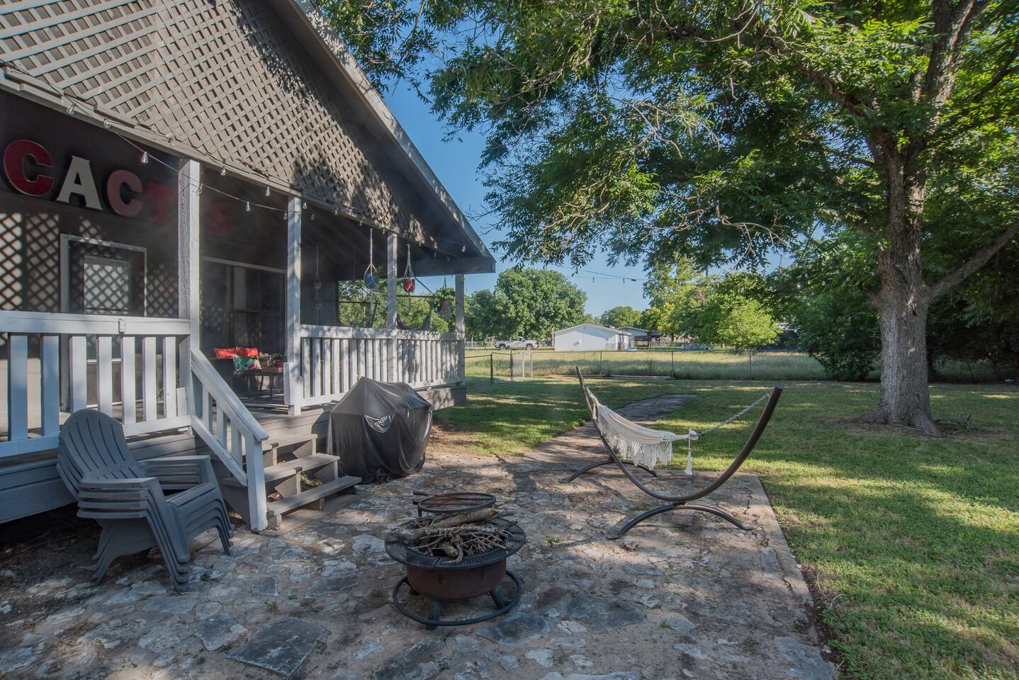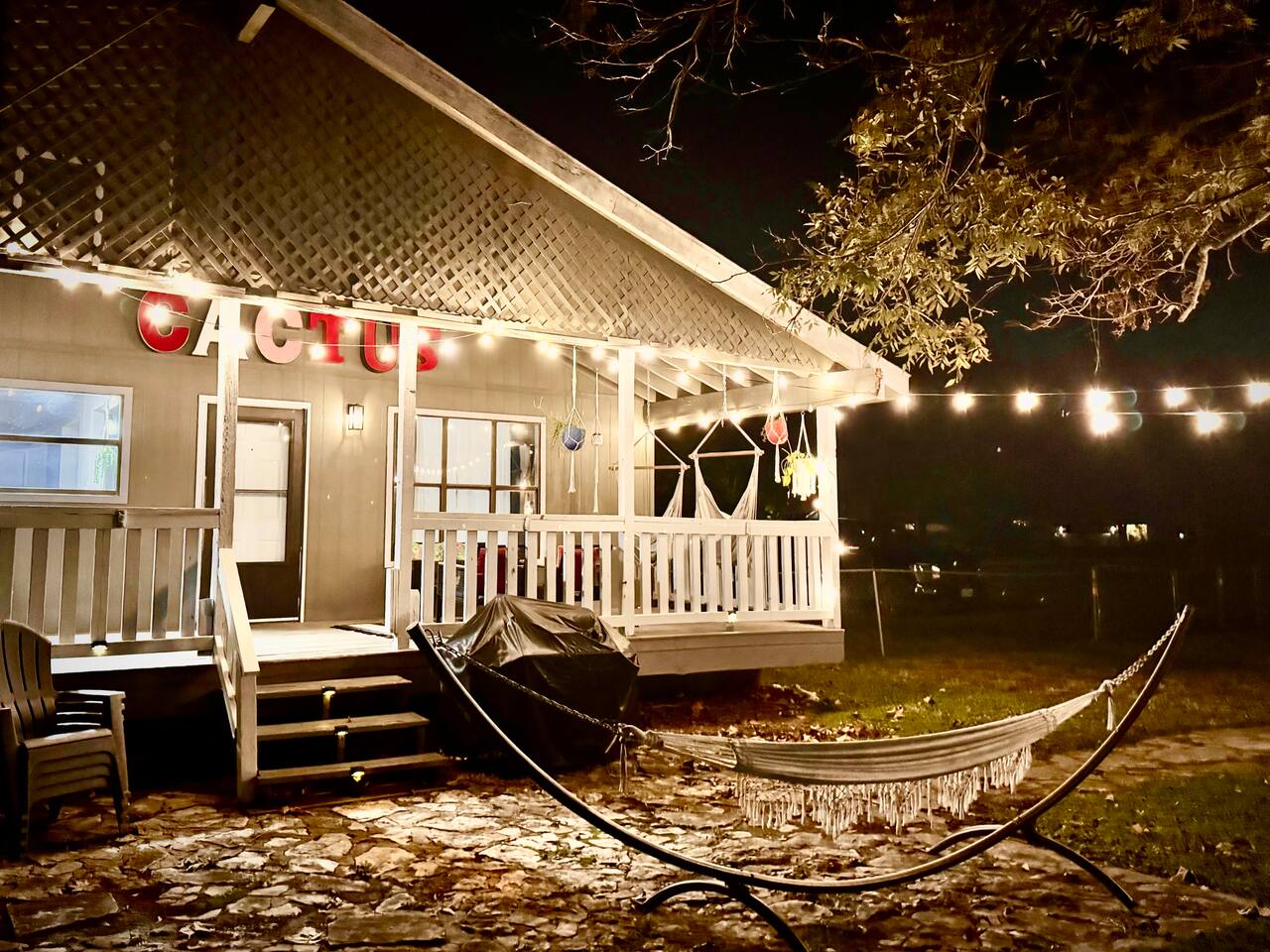 Welcome to Cactus Haus in New Braunfels, Texas! This tranquil property located just outside the city limits, offers easy access to Downtown, Schlitterbahn Waterpark, Gruene and the Comal and Guadalupe Rivers. With an open floor plan, comfy king bed, chair hammocks, fire pit, fast WIFI, and coffee bar, it's perfect for families, friends, or work stays. Book now and experience the best of what this charming city has to offer. Downtown NB 5 Miles | Schlitterbahn 6 Miles | Gruene 9 Miles