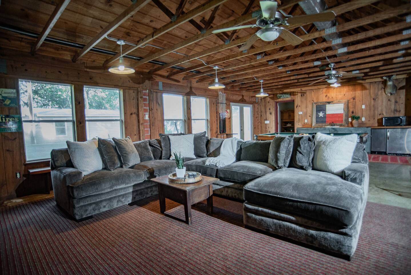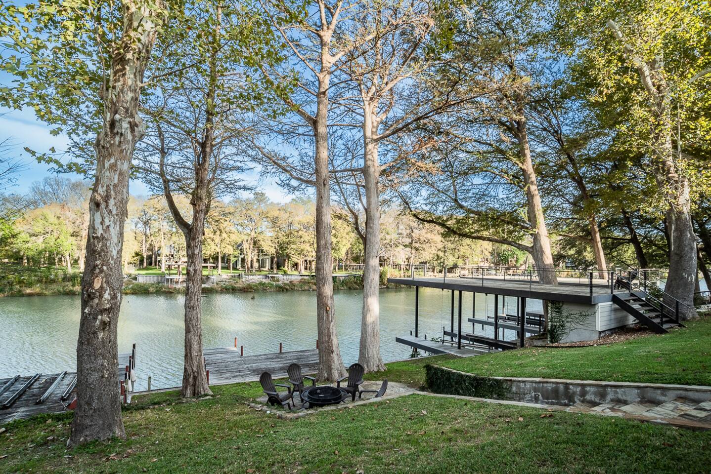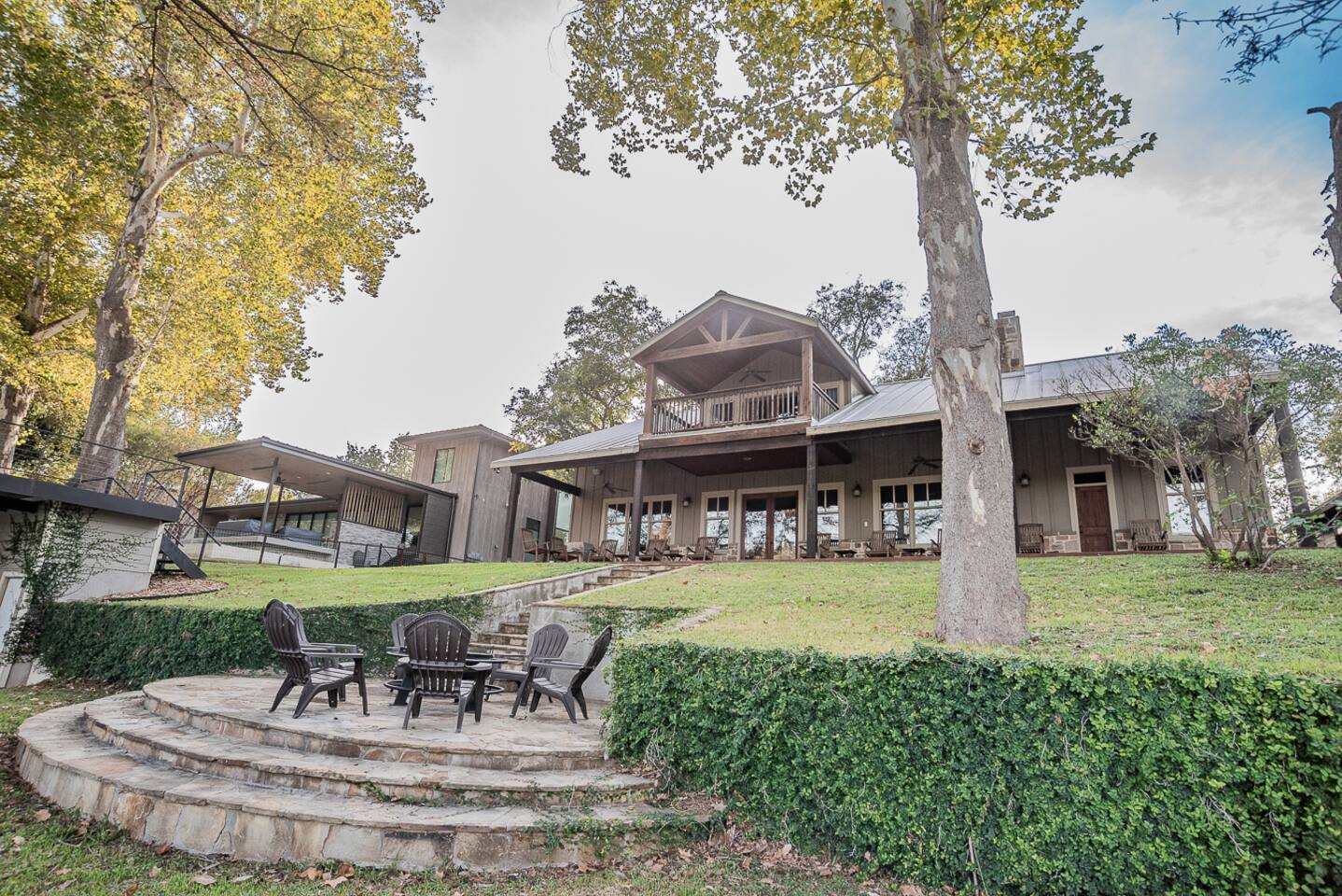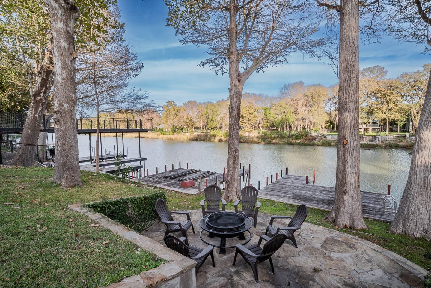 Luxury Lake McQueeney Family Retreat – 5,000 sq ft Farmhouse + Bunk House – Sleeps 16 Elegant Comfort. Scenic Lake Views. Unforgettable Family Getaways. Located just minutes from New Braunfels, this expansive private estate on Lake McQueeney is the perfect destination for large families or multi-generational groups seeking luxury, space, and entertainment. Please Note: Lake McQueeney is currently undergoing dam repairs, and direct lake access is temporarily unavailable. Guests can still enjoy stunning lake views, fishing off the dock, and relaxing in this tranquil setting. 🌟 Highlights Sleeps up to 16 guests comfortably across a 5,000 sq ft main home and a separate bunk house Game Room Paradise with pool table, ping pong, bar, TV lounge & more Spacious Open Floor Plan – Ideal for family meals, game nights & group gatherings Lakefront Property with dock access for relaxing, fishing & sunset views (note: lake access temporarily unavailable due to dam repairs) Private & Gated Acreage – Over an acre of manicured grounds for outdoor enjoyment Conveniently Located just 15 minutes from New Braunfels & popular attractions like Schlitterbahn, Gruene Hall, and the Guadalupe River 🏡 The Main House This stunning farmhouse boasts a modern-rustic design and ample space for your entire group to relax, dine, and enjoy each other's company. 4 Bedrooms | 3 Full Bathrooms | 1 Half Bathrooms Large open-concept chef’s kitchen, oversized dining area, and comfortable living room perfect for entertaining Private Master Suite (Downstairs): King bed + luxury en-suite bath w/ walk-in shower Bedroom 2 (Upstairs): King bed + shared en-suite with walk-in shower Bedroom 3 (Upstairs): Queen bed + 2 twin-over-twin bunk beds (ideal for kids or cousins) Bedroom 4 (Upstairs): 2 twin beds + adjoining full bathroom with bathtub 🛏️ The Bunk House A separate retreat just steps away, the bunk house is a haven for kids, teens, or late-night hangouts. 2 Bedrooms | 1 Full Bath | 1 Half Bath Game Room: Pool table, ping pong, lounge area with large TV, bar with mini fridge & ice machine Bedroom 1: Twin bed + twin-over-twin bunk, shares bathroom with Bedroom 2 Bedroom 2: Two twin beds + one full-size bed 🌅 Outdoor Amenities Large lakefront dock (currently no water access, but perfect for lounging or fishing) Fire pit for evening s’mores and stories Spacious patio and lawn areas for outdoor games and relaxation Private, gated entrance for added security and seclusion Treat your family to a luxury retreat that feels like a private resort—just a short drive from all the charm and adventure of New Braunfels. Whether you're reconnecting with family, celebrating a milestone, or just escaping the city, this estate has everything you need for a memorable stay.