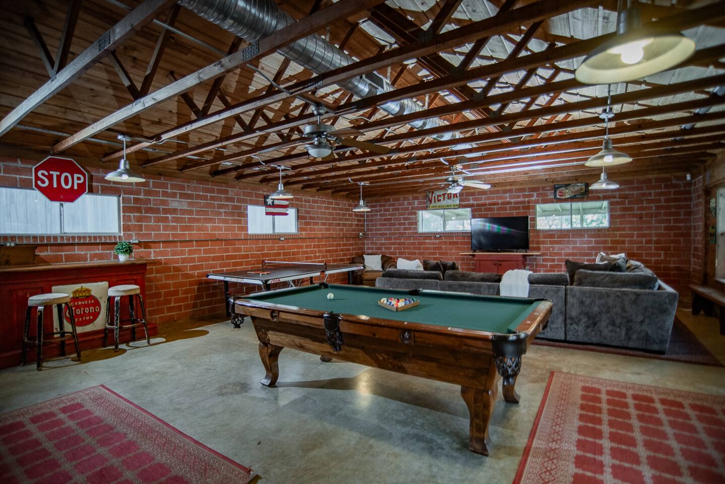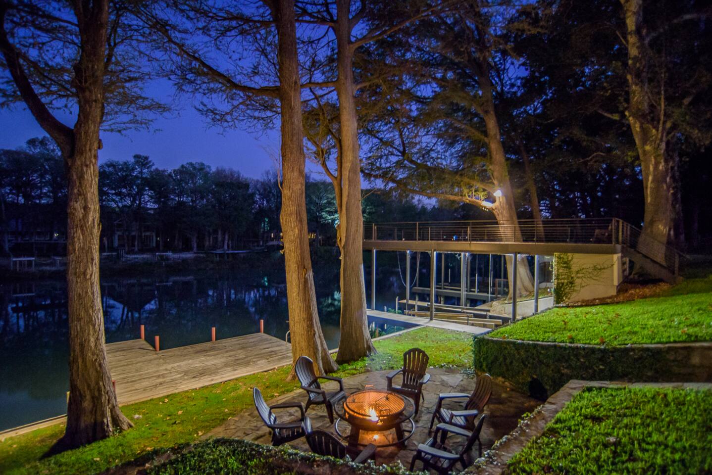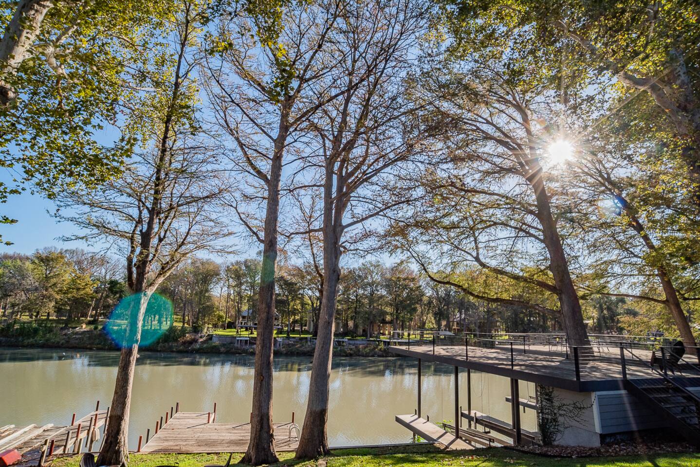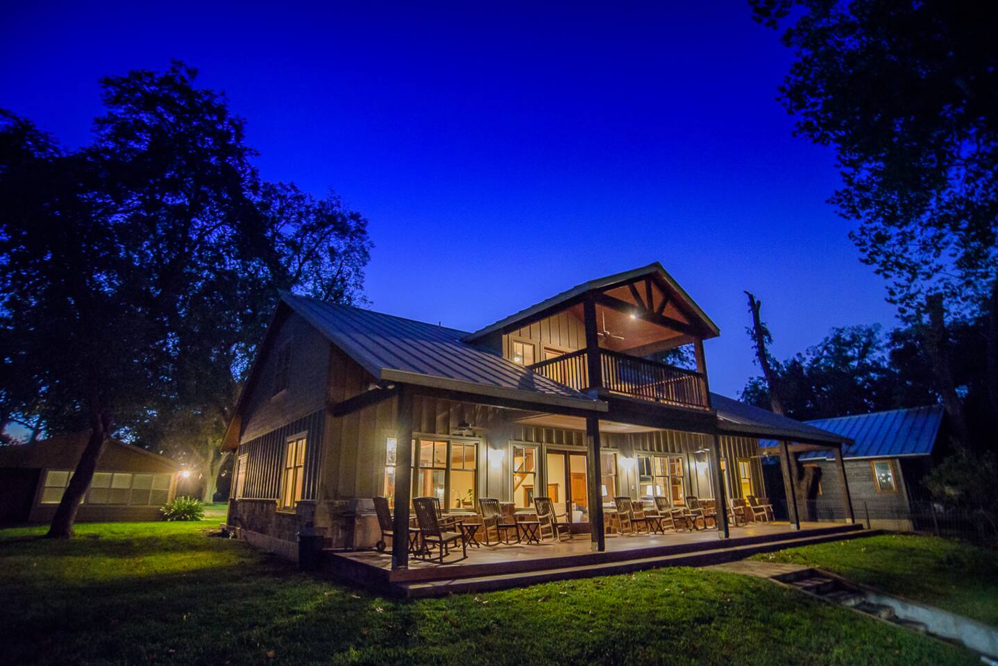 Luxury Lake McQueeney Family Retreat – 5,000 sq ft Farmhouse + Bunk House – Sleeps 16 Elegant Comfort. Scenic Lake Views. Unforgettable Family Getaways. Located just minutes from New Braunfels, this expansive private estate on Lake McQueeney is the perfect destination for large families or multi-generational groups seeking luxury, space, and entertainment. Please Note: Lake McQueeney is currently undergoing dam repairs, and direct lake access is temporarily unavailable. Guests can still enjoy stunning lake views, fishing off the dock, and relaxing in this tranquil setting. 🌟 Highlights Sleeps up to 16 guests comfortably across a 5,000 sq ft main home and a separate bunk house Game Room Paradise with pool table, ping pong, bar, TV lounge & more Spacious Open Floor Plan – Ideal for family meals, game nights & group gatherings Lakefront Property with dock access for relaxing, fishing & sunset views (note: lake access temporarily unavailable due to dam repairs) Private & Gated Acreage – Over an acre of manicured grounds for outdoor enjoyment Conveniently Located just 15 minutes from New Braunfels & popular attractions like Schlitterbahn, Gruene Hall, and the Guadalupe River 🏡 The Main House This stunning farmhouse boasts a modern-rustic design and ample space for your entire group to relax, dine, and enjoy each other's company. 4 Bedrooms | 3 Full Bathrooms | 1 Half Bathrooms Large open-concept chef’s kitchen, oversized dining area, and comfortable living room perfect for entertaining Private Master Suite (Downstairs): King bed + luxury en-suite bath w/ walk-in shower Bedroom 2 (Upstairs): King bed + shared en-suite with walk-in shower Bedroom 3 (Upstairs): Queen bed + 2 twin-over-twin bunk beds (ideal for kids or cousins) Bedroom 4 (Upstairs): 2 twin beds + adjoining full bathroom with bathtub 🛏️ The Bunk House A separate retreat just steps away, the bunk house is a haven for kids, teens, or late-night hangouts. 2 Bedrooms | 1 Full Bath | 1 Half Bath Game Room: Pool table, ping pong, lounge area with large TV, bar with mini fridge & ice machine Bedroom 1: Twin bed + twin-over-twin bunk, shares bathroom with Bedroom 2 Bedroom 2: Two twin beds + one full-size bed 🌅 Outdoor Amenities Large lakefront dock (currently no water access, but perfect for lounging or fishing) Fire pit for evening s’mores and stories Spacious patio and lawn areas for outdoor games and relaxation Private, gated entrance for added security and seclusion Treat your family to a luxury retreat that feels like a private resort—just a short drive from all the charm and adventure of New Braunfels. Whether you're reconnecting with family, celebrating a milestone, or just escaping the city, this estate has everything you need for a memorable stay.