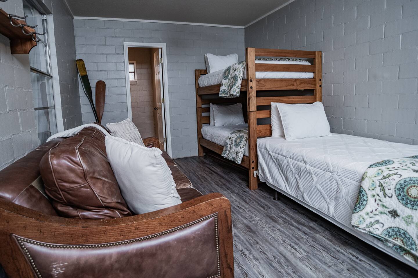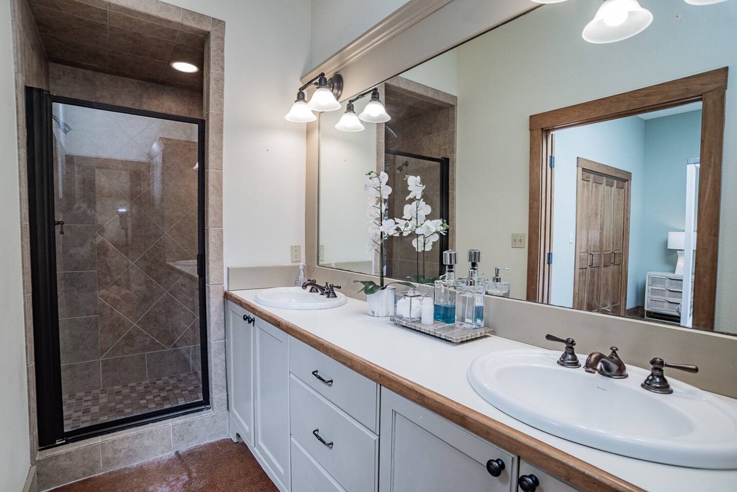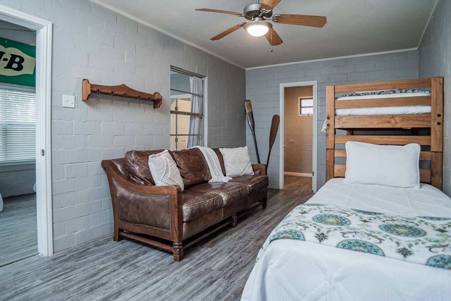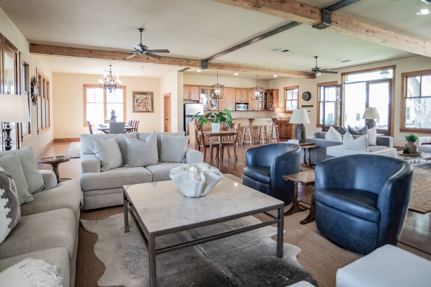 Luxury Lake McQueeney Family Retreat – 5,000 sq ft Farmhouse + Bunk House – Sleeps 16 Elegant Comfort. Scenic Lake Views. Unforgettable Family Getaways. Located just minutes from New Braunfels, this expansive private estate on Lake McQueeney is the perfect destination for large families or multi-generational groups seeking luxury, space, and entertainment. Please Note: Lake McQueeney is currently undergoing dam repairs, and direct lake access is temporarily unavailable. Guests can still enjoy stunning lake views, fishing off the dock, and relaxing in this tranquil setting. 🌟 Highlights Sleeps up to 16 guests comfortably across a 5,000 sq ft main home and a separate bunk house Game Room Paradise with pool table, ping pong, bar, TV lounge & more Spacious Open Floor Plan – Ideal for family meals, game nights & group gatherings Lakefront Property with dock access for relaxing, fishing & sunset views (note: lake access temporarily unavailable due to dam repairs) Private & Gated Acreage – Over an acre of manicured grounds for outdoor enjoyment Conveniently Located just 15 minutes from New Braunfels & popular attractions like Schlitterbahn, Gruene Hall, and the Guadalupe River 🏡 The Main House This stunning farmhouse boasts a modern-rustic design and ample space for your entire group to relax, dine, and enjoy each other's company. 4 Bedrooms | 3 Full Bathrooms | 1 Half Bathrooms Large open-concept chef’s kitchen, oversized dining area, and comfortable living room perfect for entertaining Private Master Suite (Downstairs): King bed + luxury en-suite bath w/ walk-in shower Bedroom 2 (Upstairs): King bed + shared en-suite with walk-in shower Bedroom 3 (Upstairs): Queen bed + 2 twin-over-twin bunk beds (ideal for kids or cousins) Bedroom 4 (Upstairs): 2 twin beds + adjoining full bathroom with bathtub 🛏️ The Bunk House A separate retreat just steps away, the bunk house is a haven for kids, teens, or late-night hangouts. 2 Bedrooms | 1 Full Bath | 1 Half Bath Game Room: Pool table, ping pong, lounge area with large TV, bar with mini fridge & ice machine Bedroom 1: Twin bed + twin-over-twin bunk, shares bathroom with Bedroom 2 Bedroom 2: Two twin beds + one full-size bed 🌅 Outdoor Amenities Large lakefront dock (currently no water access, but perfect for lounging or fishing) Fire pit for evening s’mores and stories Spacious patio and lawn areas for outdoor games and relaxation Private, gated entrance for added security and seclusion Treat your family to a luxury retreat that feels like a private resort—just a short drive from all the charm and adventure of New Braunfels. Whether you're reconnecting with family, celebrating a milestone, or just escaping the city, this estate has everything you need for a memorable stay.