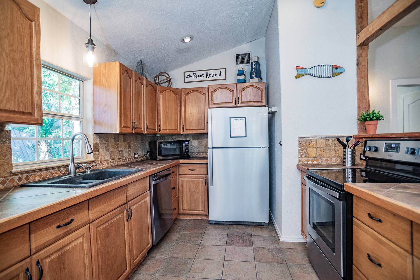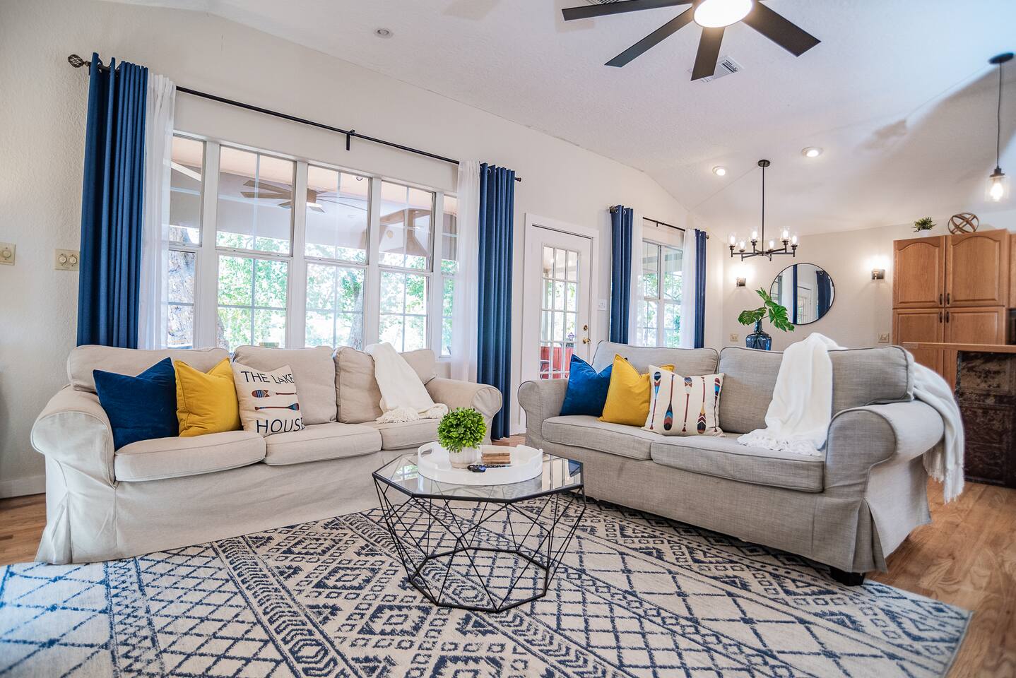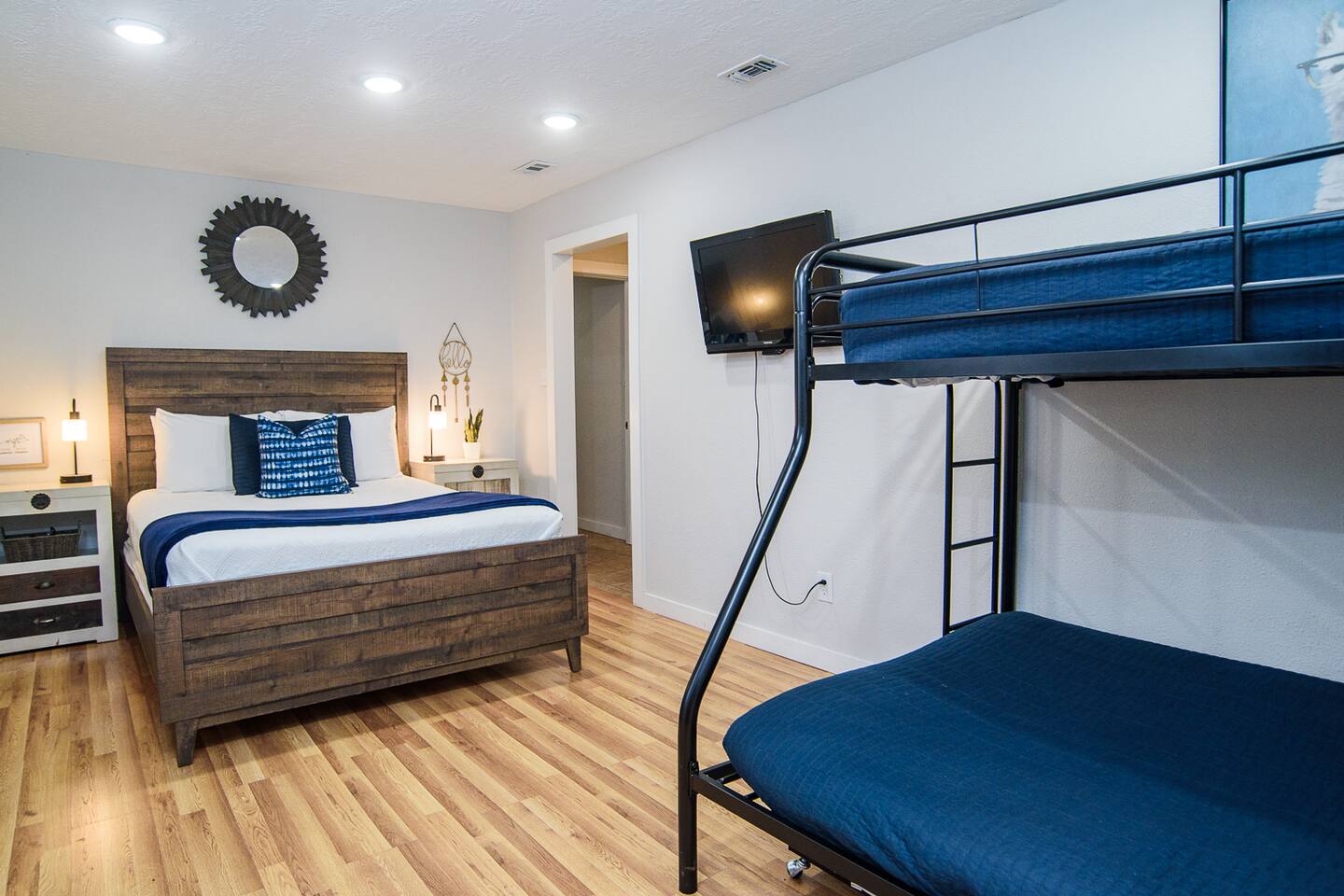๐ณ Welcome to Pecan Grove Retreat ๐ A peaceful riverside getaway nestled under a canopy of pecan trees along the Guadalupe River in Seguin, Texas โ perfectly located between Austin and San Antonio. Whether you're seeking a family vacation, a weekend with friends, or a quiet nature escape, Pecan Grove Retreat has everything you need to relax, reconnect, and recharge. ๐ธ Please Note About Water Levels: Photos accurately show current water depth (8โ10 feet) at our dock with the dam temporarily down for repairs. Water access is still available via staircases to the river, but please be aware that steep drops and multiple stairways may make the property unsuitable for toddlers or guests with mobility challenges. Although the region is experiencing drought conditions, our water depth remains steady โ however, river flow can occasionally be slow. We prioritize transparency, so please review all backyard photos carefully before booking. ๐ Pecan Grove Retreat Highlights ๐ ๐๏ธ Bedrooms & Sleeping Spaces 3 Bedrooms, 2 Full Bathrooms 2 Bedrooms with King Beds + Roku TVs Family Suite with Queen Bed, Twin-over-Full Bunk, and Twin Trundle โ includes adjoined bathroom & laundry room Living Room with Pull-Out Full Sofa Bed ๐ฎ Entertainment Roku TVs in all bedrooms Ping Pong Table Foosball Table Board Games & Books for all ages ๐ Water & Adventure Gear 3 Adult Kayaks 1 Kidโs Kayak 1 Paddleboard Direct stair access to the river ๐ฅ Outdoor Fun & Relaxation Fire Pit for S'mores Chair Hammocks and Large Hammock Stand Outdoor Dining Areas + Charcoal BBQ Grill Spacious backyard with shade, views, and room to roam Seasonal pecan picking from our on-site grove ๐ Extras Driveway parking for up to 4 vehicles Well-stocked kitchen with coffee, spices, and cooking essentials Family-friendly layout perfect for two families or groups up to 10 ๐ Explore the Area Take in the natural beauty of the Guadalupe or venture out to top local attractions, including: ๐ถ Tubing on the Comal or Guadalupe Rivers (within 30 min) ๐ Schlitterbahn Waterpark โ New Braunfels ๐๏ธ San Marcos Outlet Mall ๐ฐ Natural Bridge Caverns ๐ถ Gruene Historic District ๐ Burnt Bean BBQ โ Top 5 in Texas! ๐ข ZDTโs Amusement Park (10 min) ๐ท Wineries + Breweries nearby Whether you're fishing or kayaking at sunset, grilling under the pecan trees, or enjoying a competitive game of foosball indoors, Pecan Grove Retreat offers a slice of Texas paradise with comfort, charm, and room to unwind. ๐ We look forward to hosting you! Book your peaceful getaway today and come experience the best of the Guadalupe River.