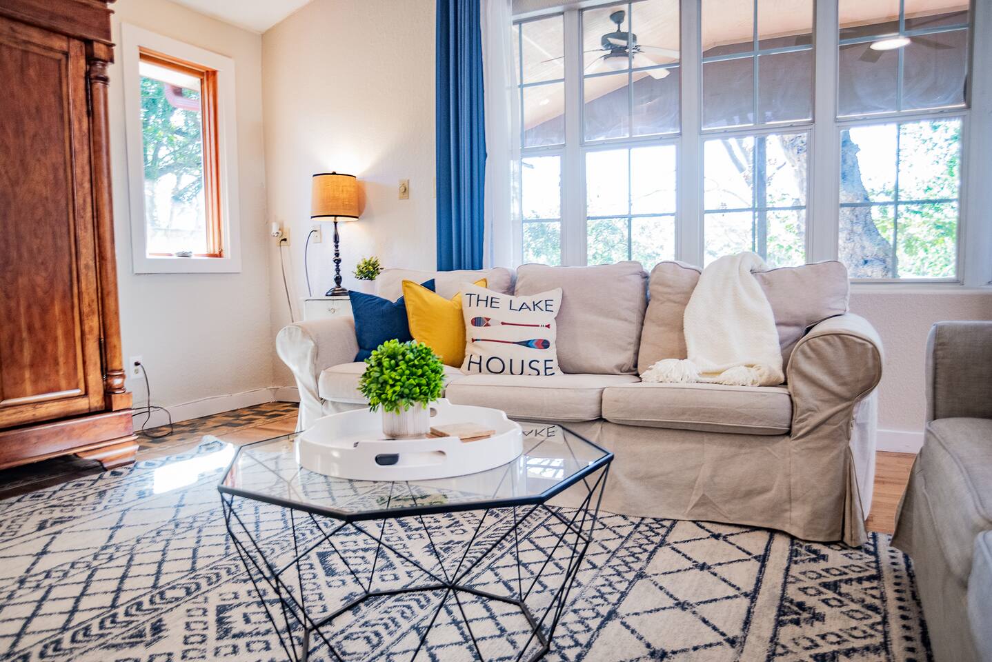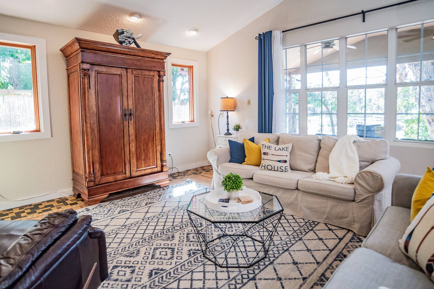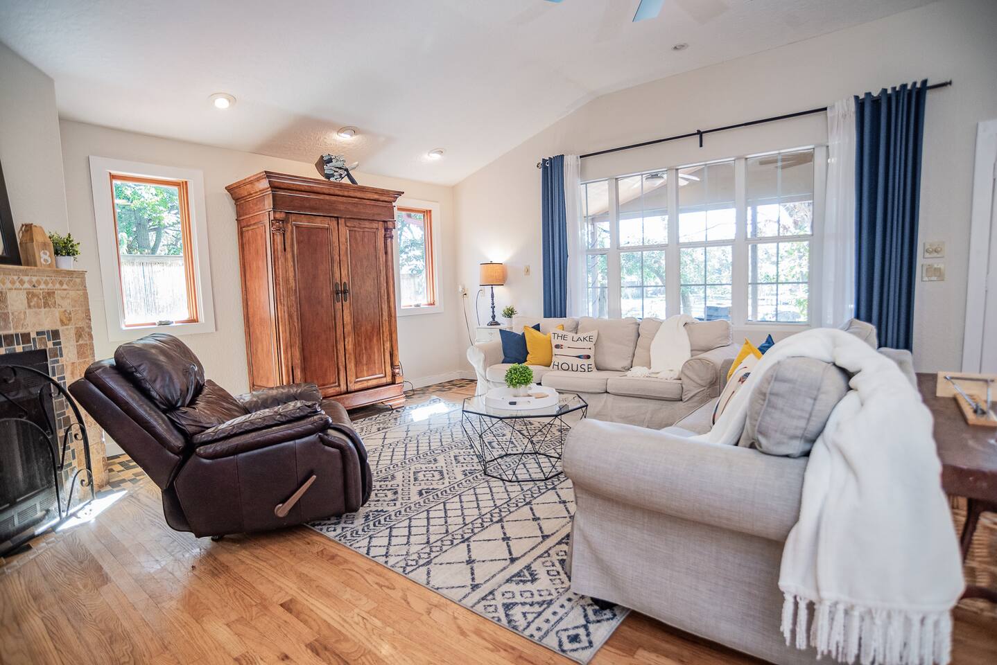 ๐ณ Welcome to Pecan Grove Retreat ๐ A peaceful riverside getaway nestled under a canopy of pecan trees along the Guadalupe River in Seguin, Texas โ perfectly located between Austin and San Antonio. Whether you're seeking a family vacation, a weekend with friends, or a quiet nature escape, Pecan Grove Retreat has everything you need to relax, reconnect, and recharge. ๐ธ Please Note About Water Levels: Photos accurately show current water depth (8โ10 feet) at our dock with the dam temporarily down for repairs. Water access is still available via staircases to the river, but please be aware that steep drops and multiple stairways may make the property unsuitable for toddlers or guests with mobility challenges. Although the region is experiencing drought conditions, our water depth remains steady โ however, river flow can occasionally be slow. We prioritize transparency, so please review all backyard photos carefully before booking. ๐ Pecan Grove Retreat Highlights ๐ ๐๏ธ Bedrooms & Sleeping Spaces 3 Bedrooms, 2 Full Bathrooms 2 Bedrooms with King Beds + Roku TVs Family Suite with Queen Bed, Twin-over-Full Bunk, and Twin Trundle โ includes adjoined bathroom & laundry room Living Room with Pull-Out Full Sofa Bed ๐ฎ Entertainment Roku TVs in all bedrooms Ping Pong Table Foosball Table Board Games & Books for all ages ๐ Water & Adventure Gear 3 Adult Kayaks 1 Kidโs Kayak 1 Paddleboard Direct stair access to the river ๐ฅ Outdoor Fun & Relaxation Fire Pit for S'mores Chair Hammocks and Large Hammock Stand Outdoor Dining Areas + Charcoal BBQ Grill Spacious backyard with shade, views, and room to roam Seasonal pecan picking from our on-site grove ๐ Extras Driveway parking for up to 4 vehicles Well-stocked kitchen with coffee, spices, and cooking essentials Family-friendly layout perfect for two families or groups up to 10 ๐ Explore the Area Take in the natural beauty of the Guadalupe or venture out to top local attractions, including: ๐ถ Tubing on the Comal or Guadalupe Rivers (within 30 min) ๐ Schlitterbahn Waterpark โ New Braunfels ๐๏ธ San Marcos Outlet Mall ๐ฐ Natural Bridge Caverns ๐ถ Gruene Historic District ๐ Burnt Bean BBQ โ Top 5 in Texas! ๐ข ZDTโs Amusement Park (10 min) ๐ท Wineries + Breweries nearby Whether you're fishing or kayaking at sunset, grilling under the pecan trees, or enjoying a competitive game of foosball indoors, Pecan Grove Retreat offers a slice of Texas paradise with comfort, charm, and room to unwind. ๐ We look forward to hosting you! Book your peaceful getaway today and come experience the best of the Guadalupe River.