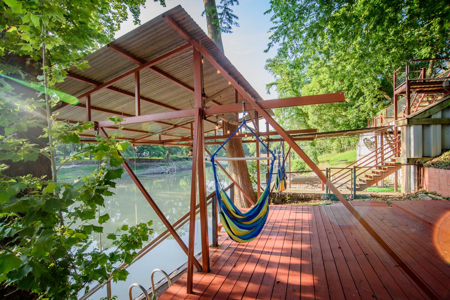 -Prior to booking, kindly be aware that the property features several staircases and steep drops from the dock, potentially making it unsuitable for toddlers and individuals with difficulty navigating steps. There is no safety gate to protect children from entering the water. -Pictures show water levels (8-10 ft deep) in front of our dock with the dam down for repairs. Stair access is available to the water. We try to be as transparent as possible about our water levels. Please review all photos before booking. -Outdoor maintenance: Outdoor amenities may have minor natural elements like cobwebs, bugs and pollen due to being in nature; we regularly clean but cannot eliminate these completely, especially during active guest stays. -Regrettably, pets are not allowed on the premises. You will be charged $250 per pet, if you bring them.