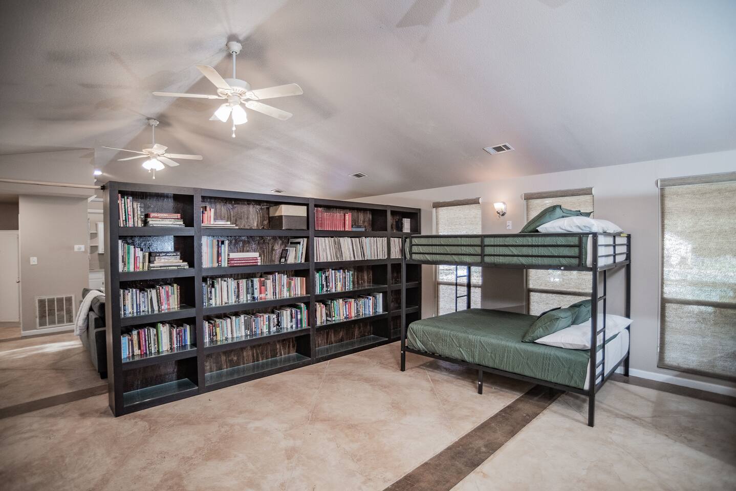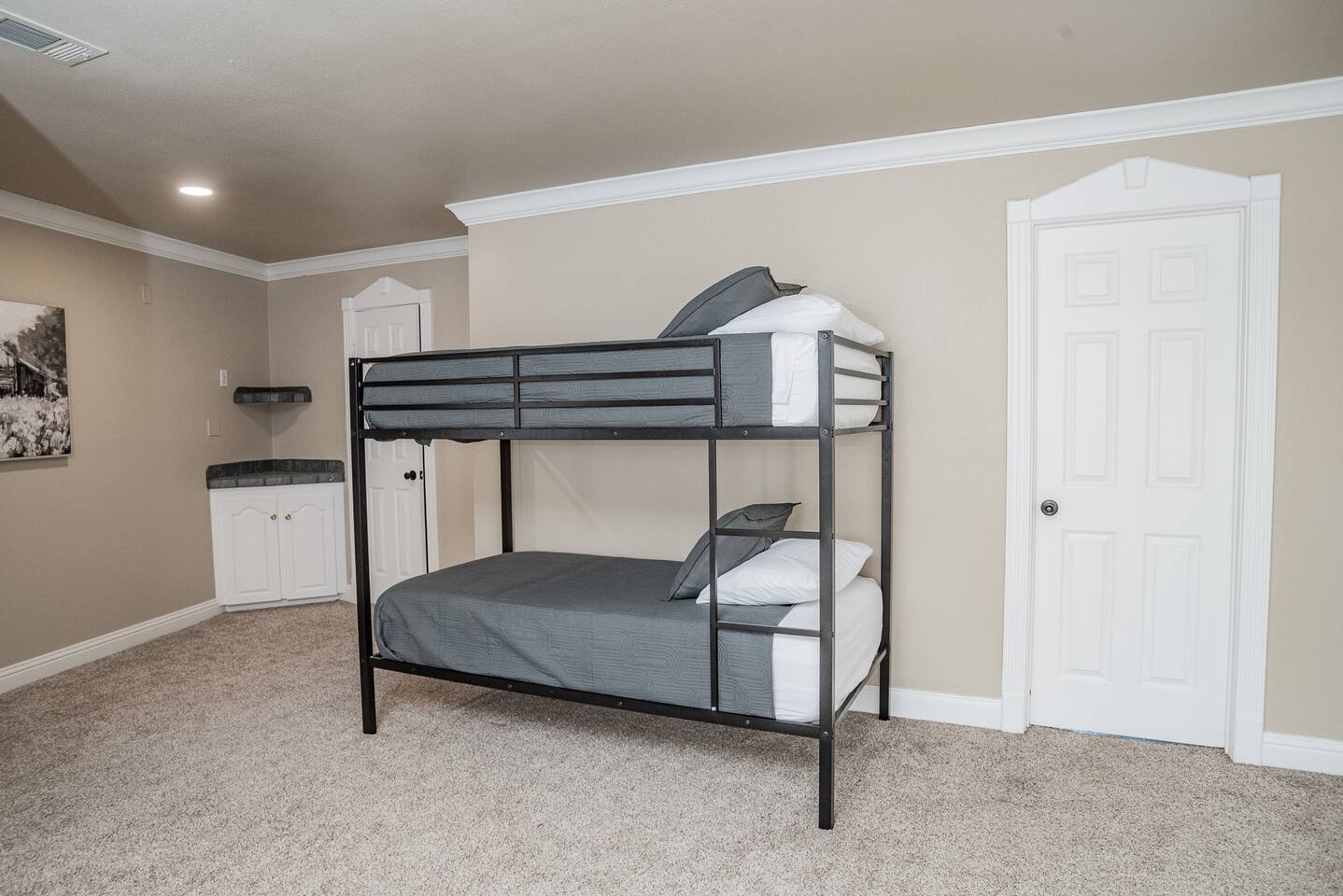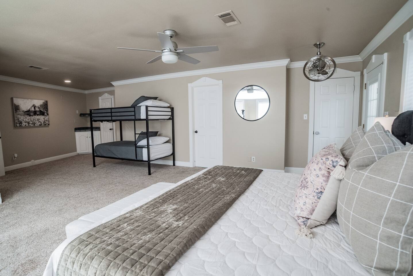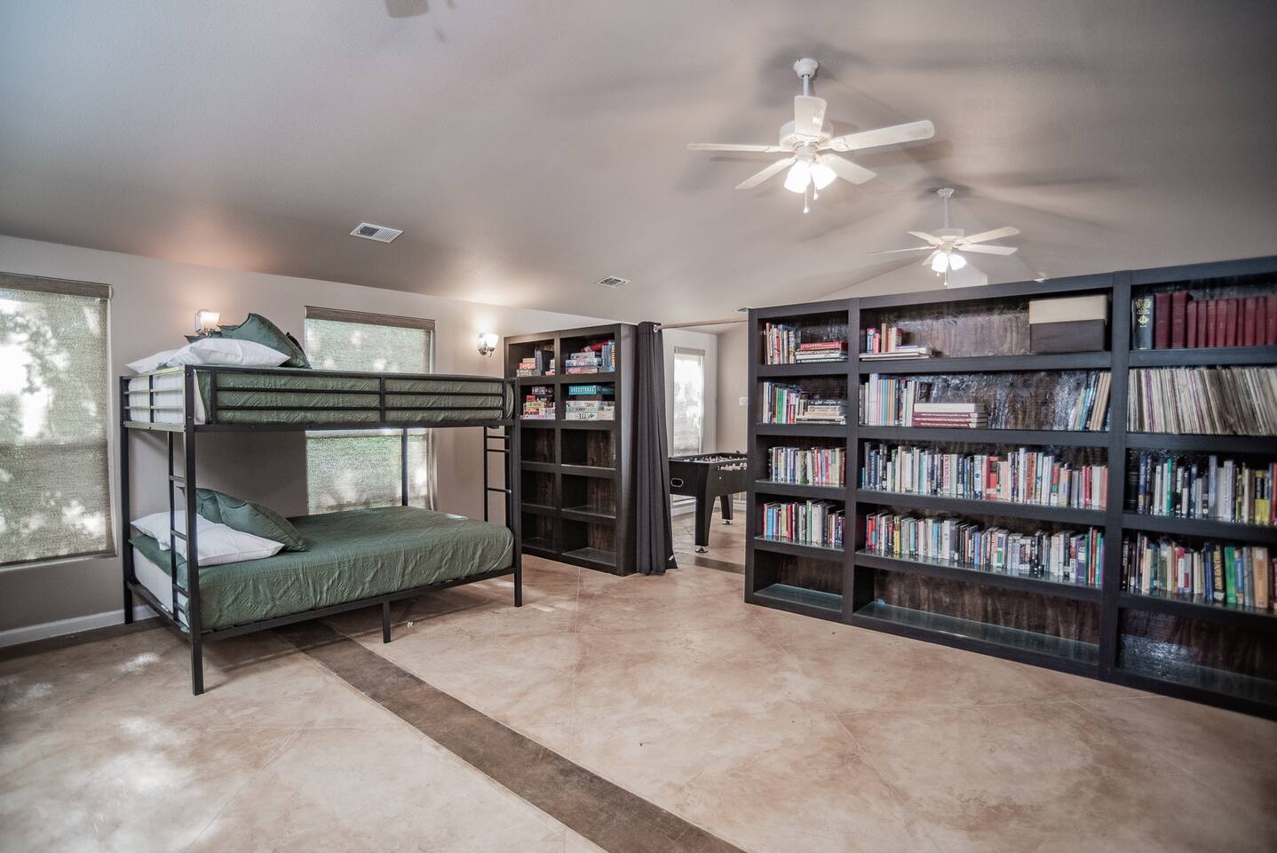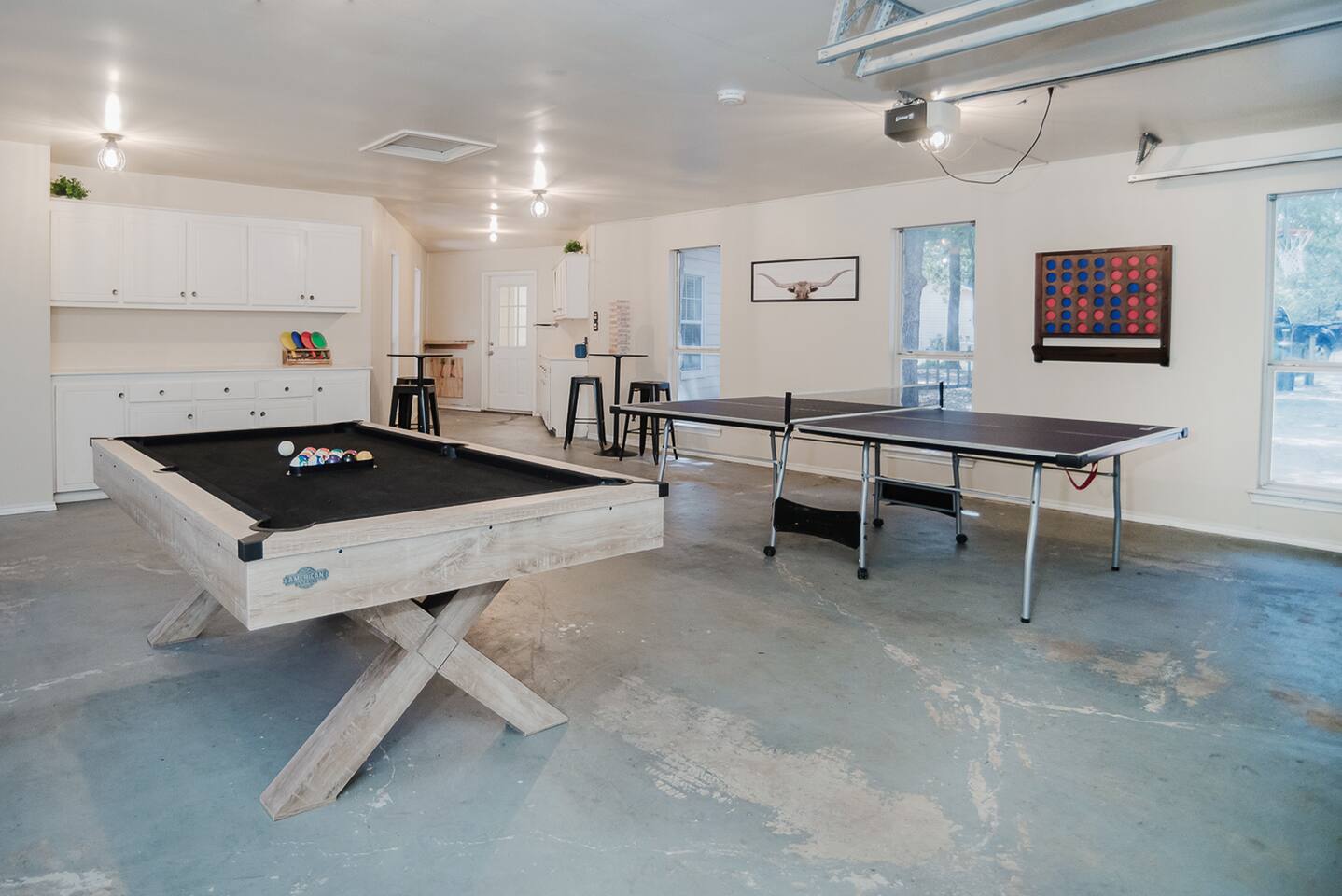 Ready to unplug, unwind, and reconnect with your people in the heart of Texas? Welcome to Lavender Gardens Resort โ a 45-acre private ranch retreat near Luling, where wide-open skies, shady trails, and fresh air set the stage for unforgettable memories. Perfect for church retreats, family reunions, team-building escapes, or just an epic group getaway, this ranch offers the ideal blend of rustic charm and modern comfort. ๐๏ธ Room for Everyone โ Sleeps up to 25 Across Two Fully Equipped Homes ๐ The Main Ranch House 3 cozy bedrooms, including a huge master suite Spacious open-concept living & dining area Fully stocked kitchen with everything but your groceries Smart TVs, WiFi, and board games for unplugged fun Central A/C and heat to keep things comfy, rain or shine ๐ก The Bunkhouse 5 Queen over Queen Bunk Beds (10 Queen Beds Total) Designed with groups in mind โ youth, extended families, or coworkers Second kitchen and casual dining space for easy meal flow Flexible sleeping arrangements โ bunk-style comfort with a side of nostalgia โ๏ธ Outdoor Fun, Ranch-Style Sparkling horseshoe-shaped pool with sun loungers and plenty of outdoor tables and seating Classic fire pit โ perfect for sโmores, stories, and starlit worship Game time: foosball, pool table, and basketball hoop Acres of open fields for kickball, relay races, or a picnic under the oaks Scenic walking trails through fields and shaded woods ๐ฟ Why Guests Love Lavender Gardens: Peace, quiet, and plenty of space โ no neighbors, no noise, no stress Easy, breezy group-friendly layout โ great for meals, sessions, or chill time A breath of fresh air for families, faith groups, and teams looking to refocus and recharge Youโll never feel crowded โ but always connected Local Attractions โ Youโre Right in the Middle of the Fun! ๐ Luling, TX (5 min away) Float or paddle the scenic San Marcos River Visit the historic Zedler Mill and Park Check out the quirky Luling Oil Museum Donโt miss the famous Watermelon Thump Festival every June Grab authentic Texas BBQ at City Market ๐ New Braunfels, TX (30โ40 min away) Go tubing on the Comal or Guadalupe Rivers Make a splash at Schlitterbahn Waterpark Dance at historic Gruene Hallโthe oldest dance hall in Texas Explore the charming Gruene Historic District for shops and bites Visit Animal World & Snake Farm Zoo Picnic or relax riverside at Cypress Bend Park Discover German-Texan history at the Sophienburg Museum Visit Natural Bridge Caverns and Zoo ๐ San Antonio, TX (1 hr west) Explore the iconic Alamo and stroll the scenic River Walk Ride coasters at Six Flags Fiesta Texas or Sea World San Antonio Visit the San Antonio Missions, a UNESCO World Heritage Site Enjoy museums, culture, and incredible Tex-Mex eats ๐ Austin, TX (1 hr north) Catch live music and food truck eats on South Congress Swim in Barton Springs or kayak Lady Bird Lake Watch the bats fly out from Congress Avenue Bridge at sunset Walk the grounds of the Texas Capitol or visit Zilker Park ๐ Your Perfect Group Getaway Starts Here Whether you're roasting marshmallows by the fire, playing in the pool, or hosting sunrise devotionals, Lavender Gardens Resort is your home base for connection, relaxation, and Texas-sized fun. Need more space? Ask about our 2 other homes on the property that sleep an additional 14 people.