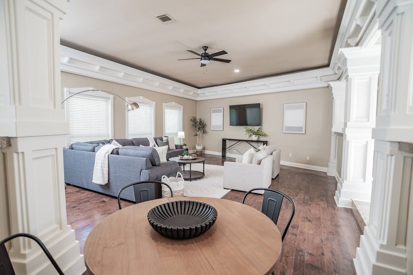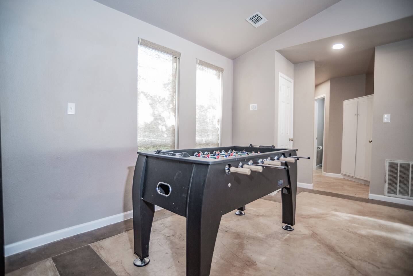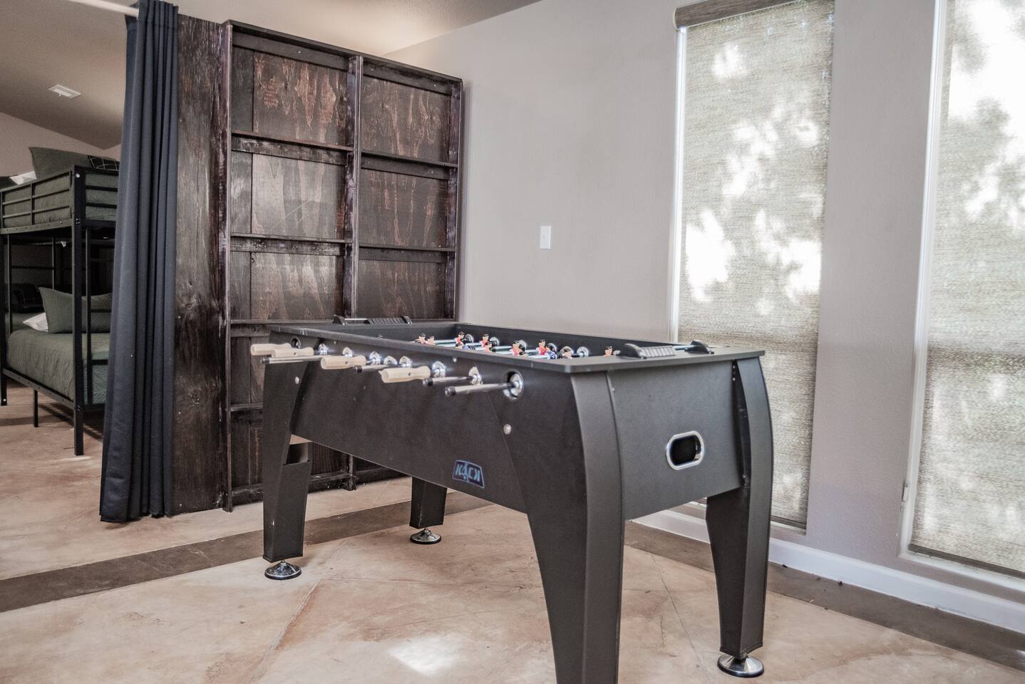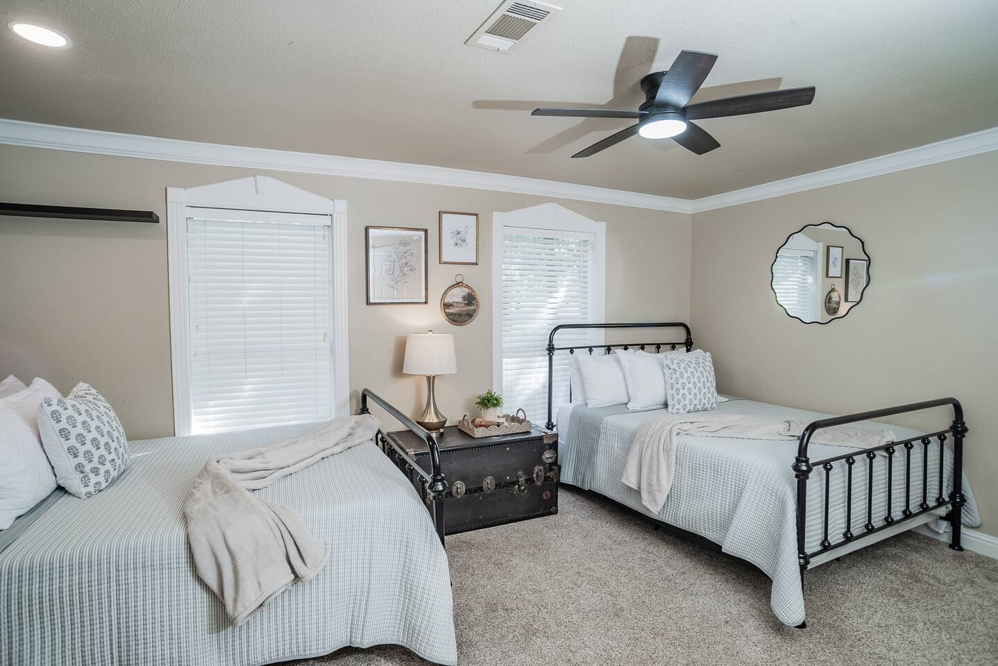 Ready to unplug, unwind, and reconnect with your people in the heart of Texas? Welcome to Lavender Gardens Resort โ a 45-acre private ranch retreat near Luling, where wide-open skies, shady trails, and fresh air set the stage for unforgettable memories. Perfect for church retreats, family reunions, team-building escapes, or just an epic group getaway, this ranch offers the ideal blend of rustic charm and modern comfort. ๐๏ธ Room for Everyone โ Sleeps up to 25 Across Two Fully Equipped Homes ๐ The Main Ranch House 3 cozy bedrooms, including a huge master suite Spacious open-concept living & dining area Fully stocked kitchen with everything but your groceries Smart TVs, WiFi, and board games for unplugged fun Central A/C and heat to keep things comfy, rain or shine ๐ก The Bunkhouse 5 Queen over Queen Bunk Beds (10 Queen Beds Total) Designed with groups in mind โ youth, extended families, or coworkers Second kitchen and casual dining space for easy meal flow Flexible sleeping arrangements โ bunk-style comfort with a side of nostalgia โ๏ธ Outdoor Fun, Ranch-Style Sparkling horseshoe-shaped pool with sun loungers and plenty of outdoor tables and seating Classic fire pit โ perfect for sโmores, stories, and starlit worship Game time: foosball, pool table, and basketball hoop Acres of open fields for kickball, relay races, or a picnic under the oaks Scenic walking trails through fields and shaded woods ๐ฟ Why Guests Love Lavender Gardens: Peace, quiet, and plenty of space โ no neighbors, no noise, no stress Easy, breezy group-friendly layout โ great for meals, sessions, or chill time A breath of fresh air for families, faith groups, and teams looking to refocus and recharge Youโll never feel crowded โ but always connected Local Attractions โ Youโre Right in the Middle of the Fun! ๐ Luling, TX (5 min away) Float or paddle the scenic San Marcos River Visit the historic Zedler Mill and Park Check out the quirky Luling Oil Museum Donโt miss the famous Watermelon Thump Festival every June Grab authentic Texas BBQ at City Market ๐ New Braunfels, TX (30โ40 min away) Go tubing on the Comal or Guadalupe Rivers Make a splash at Schlitterbahn Waterpark Dance at historic Gruene Hallโthe oldest dance hall in Texas Explore the charming Gruene Historic District for shops and bites Visit Animal World & Snake Farm Zoo Picnic or relax riverside at Cypress Bend Park Discover German-Texan history at the Sophienburg Museum Visit Natural Bridge Caverns and Zoo ๐ San Antonio, TX (1 hr west) Explore the iconic Alamo and stroll the scenic River Walk Ride coasters at Six Flags Fiesta Texas or Sea World San Antonio Visit the San Antonio Missions, a UNESCO World Heritage Site Enjoy museums, culture, and incredible Tex-Mex eats ๐ Austin, TX (1 hr north) Catch live music and food truck eats on South Congress Swim in Barton Springs or kayak Lady Bird Lake Watch the bats fly out from Congress Avenue Bridge at sunset Walk the grounds of the Texas Capitol or visit Zilker Park ๐ Your Perfect Group Getaway Starts Here Whether you're roasting marshmallows by the fire, playing in the pool, or hosting sunrise devotionals, Lavender Gardens Resort is your home base for connection, relaxation, and Texas-sized fun. Need more space? Ask about our 2 other homes on the property that sleep an additional 14 people.