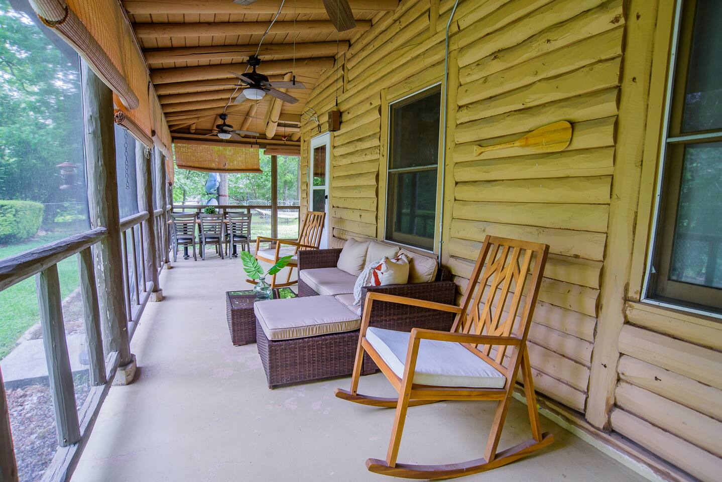 Important Information to Consider Before Booking: Rustic Country Setting: Embrace the charm of a true country home surrounded by nature. Expect the occasional presence of country creatures such as spiders, scorpions, and wasps. Despite regular spraying, these are part of the country experience. Living by the river brings encounters with various wildlife, including wild hogs, deer, snakes, wild birds, and gar fish. Please be aware and enjoy the unique ambiance of our countryside retreat. Well Water Details: The home operates on well water, and on rare occasions, you may notice a faint sulfuric smell. Rest assured, the water is meticulously filtered, clean, and entirely safe to drink. Our Neighbor has Roosters: Our thoughtful provision of sound machines in each bedroom ensures a peaceful night's sleep, even with nearby roosters. Relax and unwind without any disruptions from our feathered neighbors. Occasional Hunter Sounds: While infrequent, you may hear distant sounds of hunters. Please be aware of this possibility as you enjoy the tranquility of our rural surroundings. Water Access: Please be aware that you must go down multiple staircases to access to the water, and this may not be suitable for young children or individuals with difficulty navigating stairs. Limited Parking: Parking is available for a total of three cars. Two in the carport and one additional car in front of the house. Please plan accordingly and make the most of our cozy accommodations. Pet Policy: Regrettably, we cannot accommodate pets under any circumstances. We appreciate your understanding and cooperation in maintaining a pet-free environment. Outdoor Quiet Hours: To ensure a peaceful environment, outdoor quiet hours are strictly enforced from 10 pm to 8 am. Kindly respect these hours for the comfort of all guests and neighbors. Guest Limit and No Trespassing: The property can only accommodate a maximum of six guests, and only individuals included in your reservation are permitted on the premises. Additionally, please refrain from trespassing on neighboring properties, respecting the privacy of our neighbors. Check us out @rivertraillogcabin