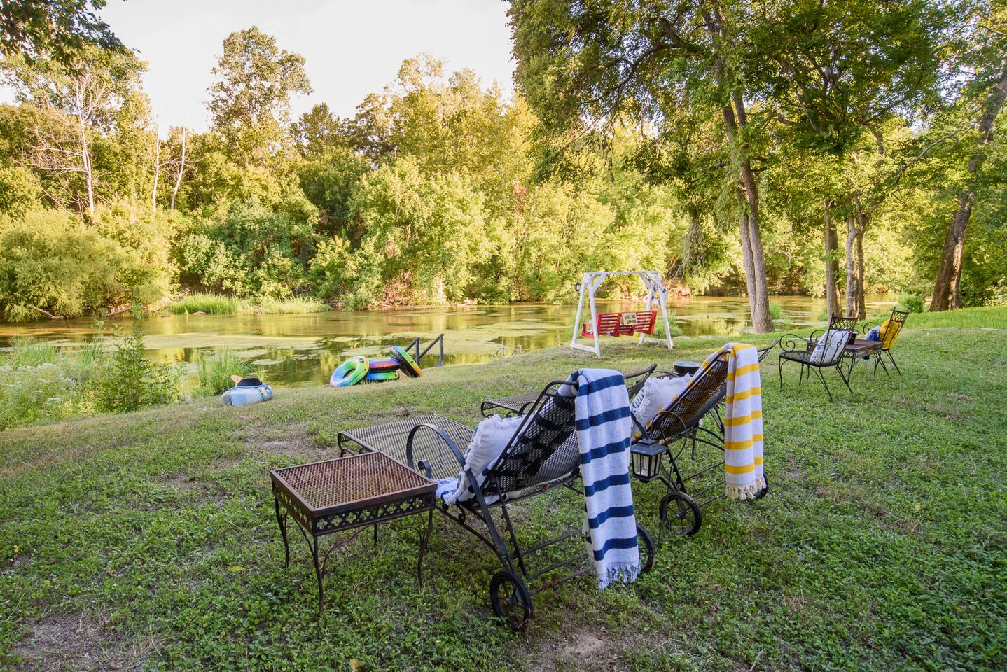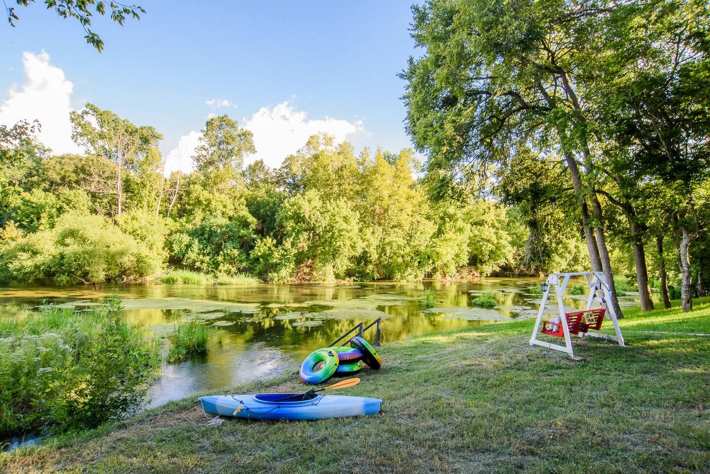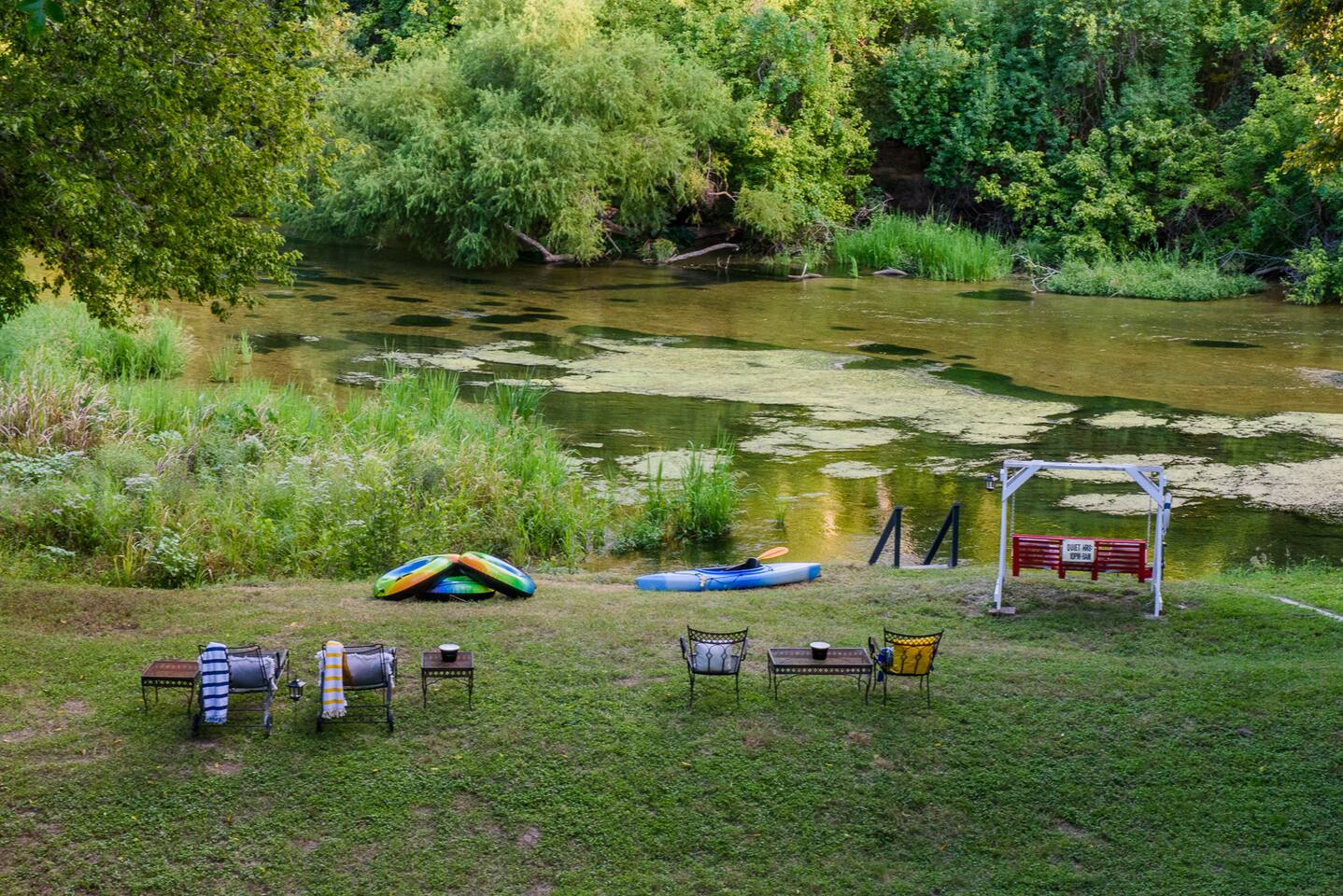 π Highlights π ποΈ 3 Comfy Bedrooms πΏ 1.5 Bathrooms π Ping Pong Table for Family Face-Offs π£ 3 Kayaks (2 Singles + 1 Tandem = Endless River Fun) π² Giant Jenga, Connect 4, Corn Hole β Game On! π Porch Swing & Riverfront Swing π§Ί 2 Hammocks to Lounge Under the Trees π₯ Chiminea for Cozy Nighttime Chats π‘ Welcome to the Cozy Log Cabin on the Guadalupe River! Pack your swimsuits, sunscreen, and sense of adventure β your riverside retreat awaits! Tucked along the beautiful Guadalupe River in Seguin, Texas, this charming log cabin is the perfect getaway for families, couples, and groups looking to relax, reconnect, and have a little fun. With 3 bedrooms and 1.5 bathrooms, the cabin sleeps everyone comfortably and has a fully equipped kitchen ready for pancake breakfasts or Texas BBQ feasts. The screened-in porch is a fan favorite β complete with a porch swing, ping pong table, rocking chairs, and comfy seating for sipping your morning coffee or winding down after a day on the river. Outside is where the real magic happens. Launch one of our 3 kayaks for a peaceful paddle, kick back in a hammock under the trees, or gather around the chiminea for storytelling and sβmores. Weβve loaded the cabin with classic outdoor games like corn hole and giant Jenga to keep the whole crew entertained. The property is surrounded by wildlife β keep your eyes peeled for deer and birds β and while it feels wonderfully secluded, you're just 10 minutes from town. Grab dinner, stock up on supplies, or sample local favorites like the award-winning Burnt Bean BBQ, breweries, and even a nearby amusement park. Want to explore more of Texas Hill Country? New Braunfels is only 30 minutes away, and both San Antonio and Austin make for easy day trips full of history, food, and fun.