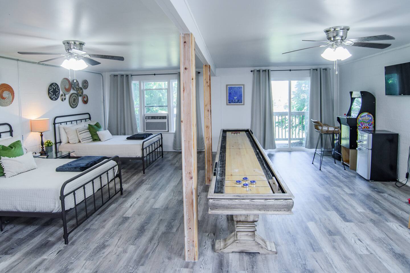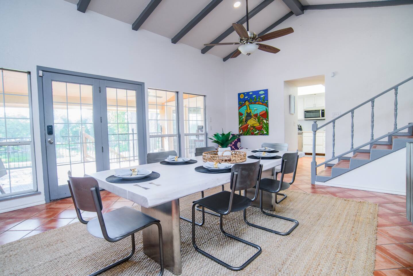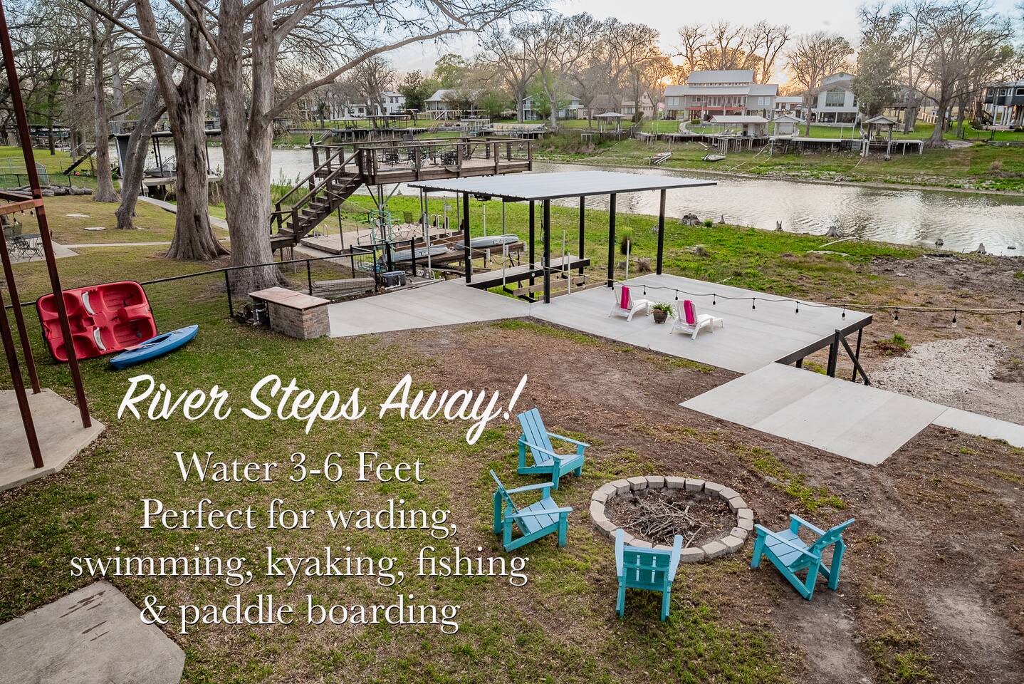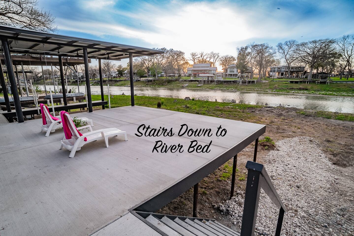 Welcome to Turtle House – Your Lakeside Escape in Seguin, Texas *** Property is currently at listing pictures river water levels (2-5ft) while the dam is being repaired. Dam will be completed and back up to lake levels around July 2025! *** Escape to the serenity of Turtle House, a stunning, contemporary vacation retreat located on the tranquil shores of the Lake Placid-Guadalupe River water system in Seguin, Texas. With over 3,500 sq. ft. of luxurious space, this expansive home is designed for relaxation, adventure, and unforgettable moments with loved ones. Spacious & Inviting Step inside to find an open-concept living and dining area, flooded with natural light, offering the perfect space for both intimate gatherings and lively family moments. The fully stocked kitchen ensures meal preparation is a breeze, and with a full-size washer and dryer, convenience is never far away. Relax & Reconnect Outside, unwind on the large back porch, where you can sip your morning coffee while watching the sunrise or enjoy an evening cocktail as the sun sets over the Guadalupe River. Hammock chairs beckon for a peaceful afternoon nap, and the fire pit invites you to roast s’mores under the stars. Fun for All Ages The Turtle House game room is an absolute hit for families! From friendly games of pool and shuffleboard to classic arcade favorites, there's something to entertain everyone. Kids (and adults alike) can create lasting memories, whether playing a round of shuffleboard or enjoying our vintage arcade game. Waterfront Paradise Step outside and experience a slice of paradise on the water. The back deck and upper balcony provide breathtaking views of the Guadalupe River, perfect for watching the ever-changing hues of the sunset. Dive into the peaceful river, perfect for wading, floating, and water sports. Kayaking, paddleboarding, and fishing await right at your doorstep. The river is known for its excellent fishing, with species like bass, blue cats, and channel cats populating the area. Easily access the water via the boat ramp on the adjoining property, where you can launch kayaks, paddle boards, and other water toys. The shallow, slow-moving waters (averaging 2-5 feet) are ideal for relaxing on the water and enjoying the natural beauty of the river. Please note: Water levels in the area are currently lower due to repairs on the Lake Placid Dam, but the setting remains perfect for water activities and enjoying the peaceful flow of the river. Pictures reflect current water levels. Room for Everyone! With 5 spacious bedrooms and a game room, there’s room for everyone to rest and recharge: Master Suite: King Bed, TV, and an en-suite bathroom for your ultimate comfort and privacy. Second Bedroom: Queen Bed with an attached Jack-and-Jill bathroom. Third Bedroom: Queen Bed with TV and attached Jack-and-Jill bathroom. Fourth Bedroom: Queen Bed, perfect for a peaceful night’s sleep. Fifth Bedroom & Game Room: 2 Double Beds, TV, Shuffleboard table, arcade game console, and a full-size pool table, plus an adjoining laundry area. A Perfect Getaway Whether you’re here for an adventure-packed weekend or a relaxing retreat, Turtle House offers everything you need to unwind and enjoy the beauty of nature. Please note that the property features several staircases and a steep drop-off from the dock, making it less suitable for toddlers or those with mobility concerns. Come experience the peaceful charm of Turtle House – where adventure meets relaxation in a gorgeous lakeside setting. We can’t wait to host you!