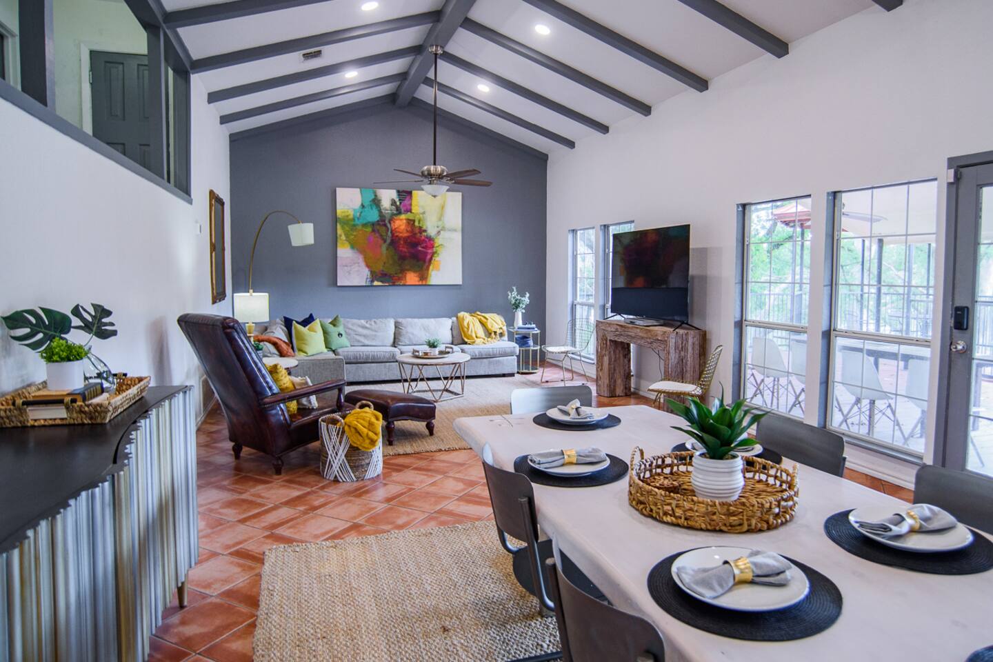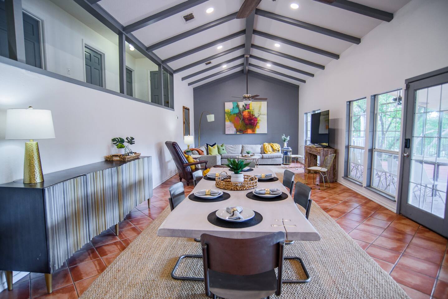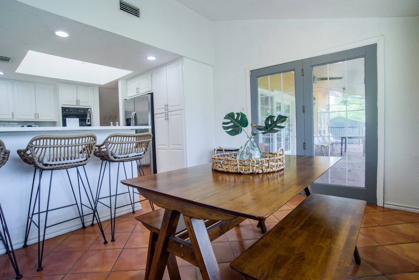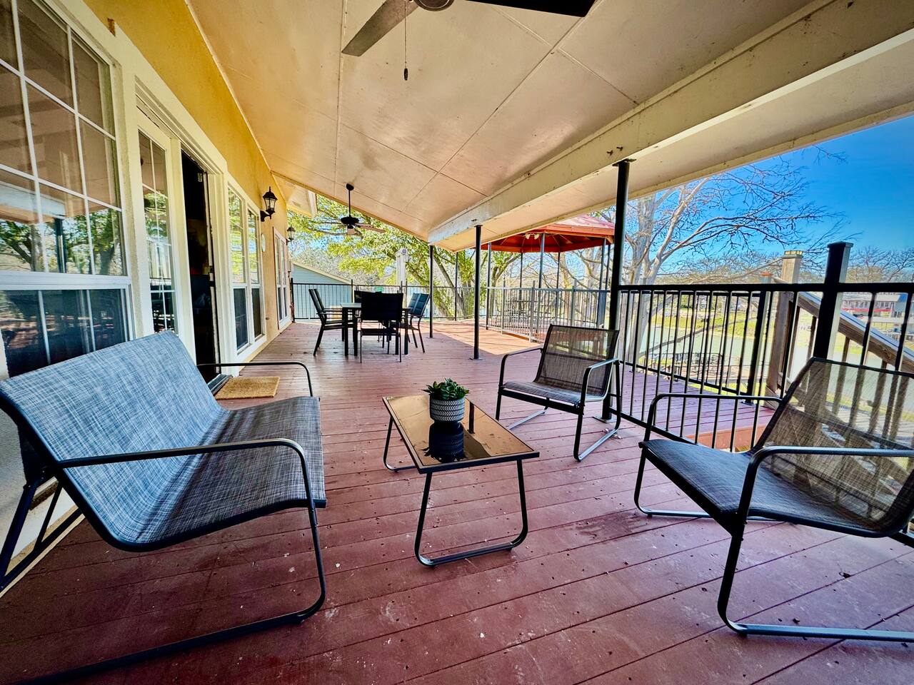 Welcome to Turtle House – Your Lakeside Escape in Seguin, Texas *** Property is currently at listing pictures river water levels (2-5ft) while the dam is being repaired. Dam will be completed and back up to lake levels around July 2025! *** Escape to the serenity of Turtle House, a stunning, contemporary vacation retreat located on the tranquil shores of the Lake Placid-Guadalupe River water system in Seguin, Texas. With over 3,500 sq. ft. of luxurious space, this expansive home is designed for relaxation, adventure, and unforgettable moments with loved ones. Spacious & Inviting Step inside to find an open-concept living and dining area, flooded with natural light, offering the perfect space for both intimate gatherings and lively family moments. The fully stocked kitchen ensures meal preparation is a breeze, and with a full-size washer and dryer, convenience is never far away. Relax & Reconnect Outside, unwind on the large back porch, where you can sip your morning coffee while watching the sunrise or enjoy an evening cocktail as the sun sets over the Guadalupe River. Hammock chairs beckon for a peaceful afternoon nap, and the fire pit invites you to roast s’mores under the stars. Fun for All Ages The Turtle House game room is an absolute hit for families! From friendly games of pool and shuffleboard to classic arcade favorites, there's something to entertain everyone. Kids (and adults alike) can create lasting memories, whether playing a round of shuffleboard or enjoying our vintage arcade game. Waterfront Paradise Step outside and experience a slice of paradise on the water. The back deck and upper balcony provide breathtaking views of the Guadalupe River, perfect for watching the ever-changing hues of the sunset. Dive into the peaceful river, perfect for wading, floating, and water sports. Kayaking, paddleboarding, and fishing await right at your doorstep. The river is known for its excellent fishing, with species like bass, blue cats, and channel cats populating the area. Easily access the water via the boat ramp on the adjoining property, where you can launch kayaks, paddle boards, and other water toys. The shallow, slow-moving waters (averaging 2-5 feet) are ideal for relaxing on the water and enjoying the natural beauty of the river. Please note: Water levels in the area are currently lower due to repairs on the Lake Placid Dam, but the setting remains perfect for water activities and enjoying the peaceful flow of the river. Pictures reflect current water levels. Room for Everyone! With 5 spacious bedrooms and a game room, there’s room for everyone to rest and recharge: Master Suite: King Bed, TV, and an en-suite bathroom for your ultimate comfort and privacy. Second Bedroom: Queen Bed with an attached Jack-and-Jill bathroom. Third Bedroom: Queen Bed with TV and attached Jack-and-Jill bathroom. Fourth Bedroom: Queen Bed, perfect for a peaceful night’s sleep. Fifth Bedroom & Game Room: 2 Double Beds, TV, Shuffleboard table, arcade game console, and a full-size pool table, plus an adjoining laundry area. A Perfect Getaway Whether you’re here for an adventure-packed weekend or a relaxing retreat, Turtle House offers everything you need to unwind and enjoy the beauty of nature. Please note that the property features several staircases and a steep drop-off from the dock, making it less suitable for toddlers or those with mobility concerns. Come experience the peaceful charm of Turtle House – where adventure meets relaxation in a gorgeous lakeside setting. We can’t wait to host you!
