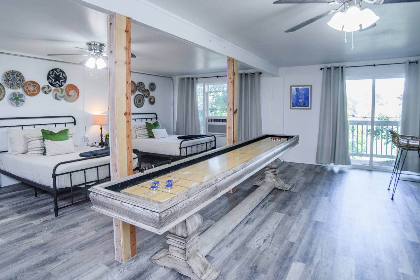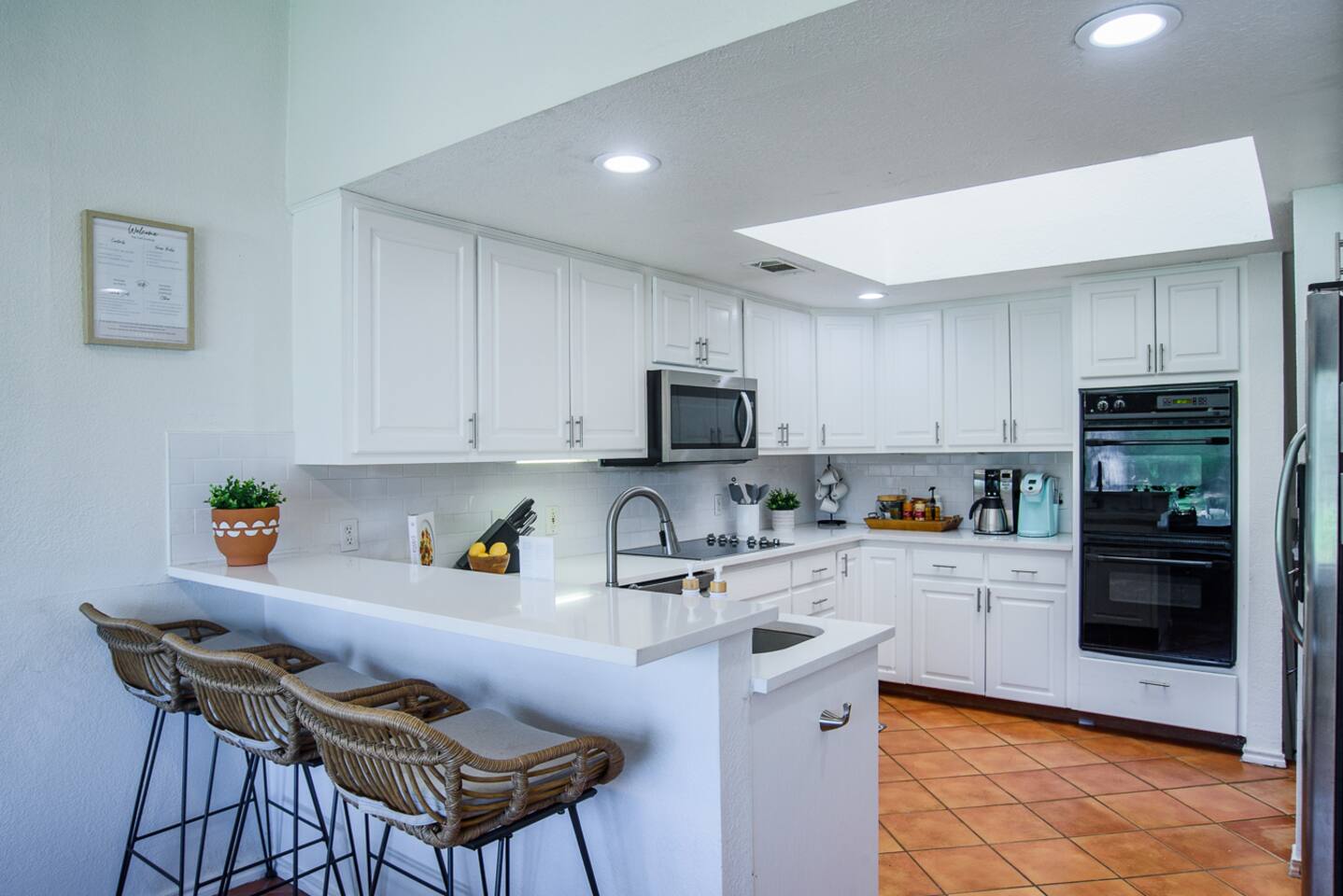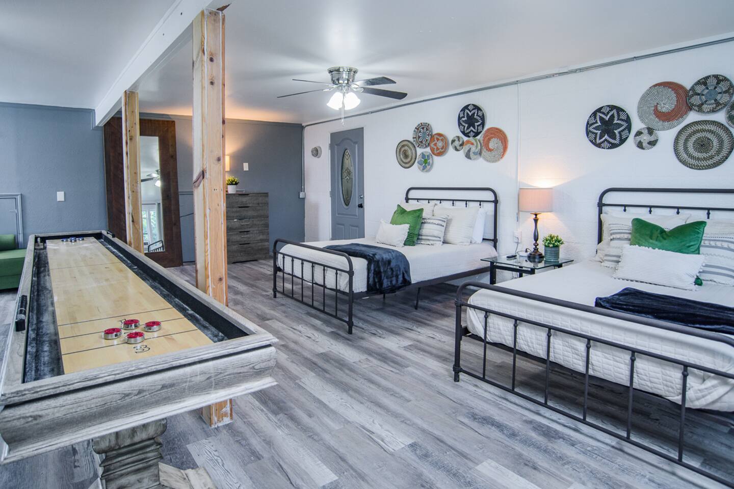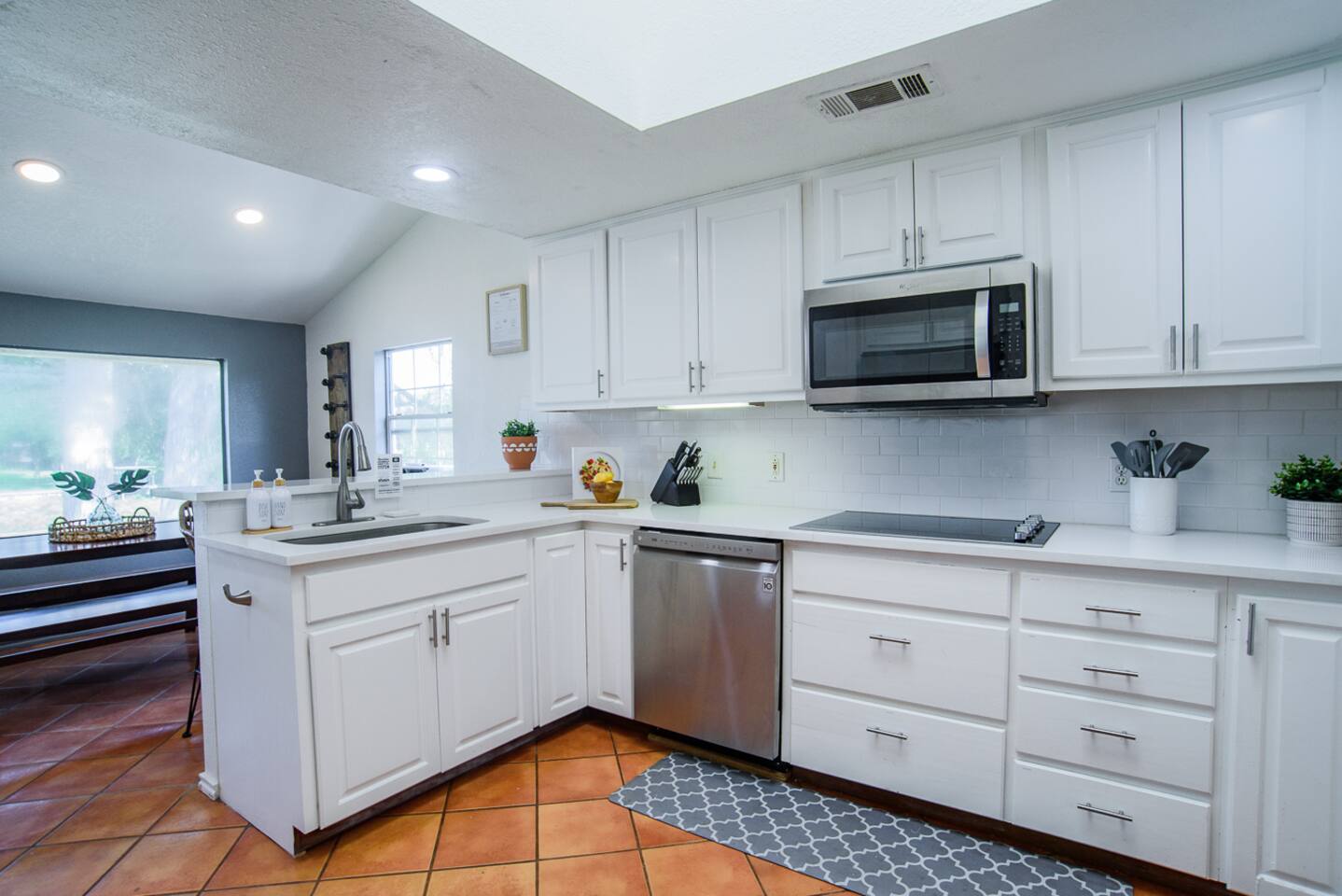 Welcome to Turtle House – Your Lakeside Escape in Seguin, Texas *** Property is currently at listing pictures river water levels (2-5ft) while the dam is being repaired. Dam will be completed and back up to lake levels around July 2025! *** Escape to the serenity of Turtle House, a stunning, contemporary vacation retreat located on the tranquil shores of the Lake Placid-Guadalupe River water system in Seguin, Texas. With over 3,500 sq. ft. of luxurious space, this expansive home is designed for relaxation, adventure, and unforgettable moments with loved ones. Spacious & Inviting Step inside to find an open-concept living and dining area, flooded with natural light, offering the perfect space for both intimate gatherings and lively family moments. The fully stocked kitchen ensures meal preparation is a breeze, and with a full-size washer and dryer, convenience is never far away. Relax & Reconnect Outside, unwind on the large back porch, where you can sip your morning coffee while watching the sunrise or enjoy an evening cocktail as the sun sets over the Guadalupe River. Hammock chairs beckon for a peaceful afternoon nap, and the fire pit invites you to roast s’mores under the stars. Fun for All Ages The Turtle House game room is an absolute hit for families! From friendly games of pool and shuffleboard to classic arcade favorites, there's something to entertain everyone. Kids (and adults alike) can create lasting memories, whether playing a round of shuffleboard or enjoying our vintage arcade game. Waterfront Paradise Step outside and experience a slice of paradise on the water. The back deck and upper balcony provide breathtaking views of the Guadalupe River, perfect for watching the ever-changing hues of the sunset. Dive into the peaceful river, perfect for wading, floating, and water sports. Kayaking, paddleboarding, and fishing await right at your doorstep. The river is known for its excellent fishing, with species like bass, blue cats, and channel cats populating the area. Easily access the water via the boat ramp on the adjoining property, where you can launch kayaks, paddle boards, and other water toys. The shallow, slow-moving waters (averaging 2-5 feet) are ideal for relaxing on the water and enjoying the natural beauty of the river. Please note: Water levels in the area are currently lower due to repairs on the Lake Placid Dam, but the setting remains perfect for water activities and enjoying the peaceful flow of the river. Pictures reflect current water levels. Room for Everyone! With 5 spacious bedrooms and a game room, there’s room for everyone to rest and recharge: Master Suite: King Bed, TV, and an en-suite bathroom for your ultimate comfort and privacy. Second Bedroom: Queen Bed with an attached Jack-and-Jill bathroom. Third Bedroom: Queen Bed with TV and attached Jack-and-Jill bathroom. Fourth Bedroom: Queen Bed, perfect for a peaceful night’s sleep. Fifth Bedroom & Game Room: 2 Double Beds, TV, Shuffleboard table, arcade game console, and a full-size pool table, plus an adjoining laundry area. A Perfect Getaway Whether you’re here for an adventure-packed weekend or a relaxing retreat, Turtle House offers everything you need to unwind and enjoy the beauty of nature. Please note that the property features several staircases and a steep drop-off from the dock, making it less suitable for toddlers or those with mobility concerns. Come experience the peaceful charm of Turtle House – where adventure meets relaxation in a gorgeous lakeside setting. We can’t wait to host you!