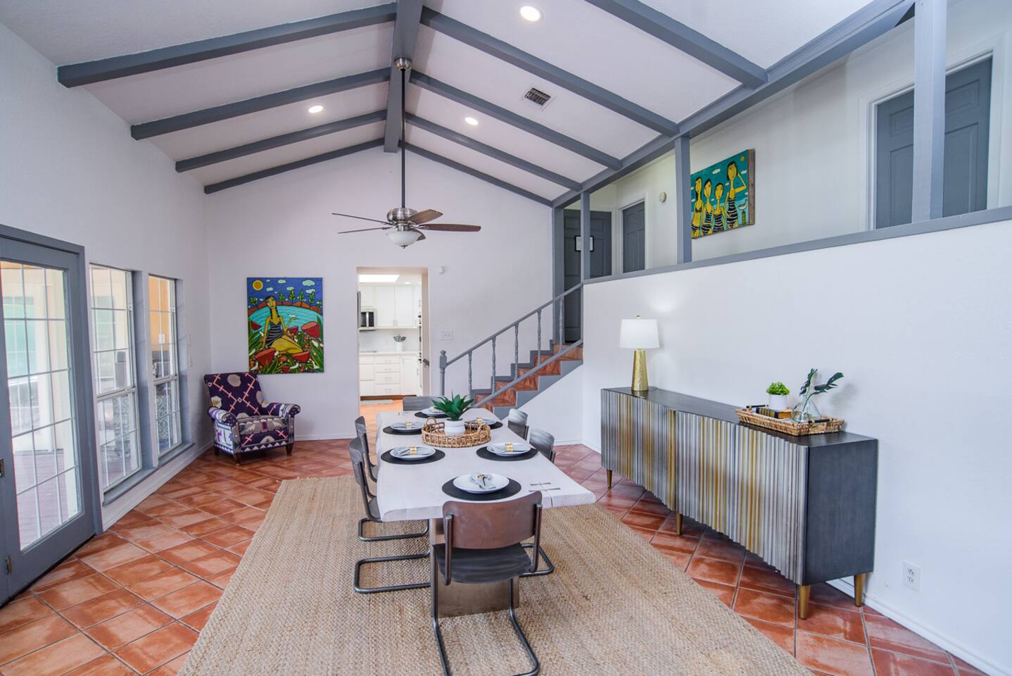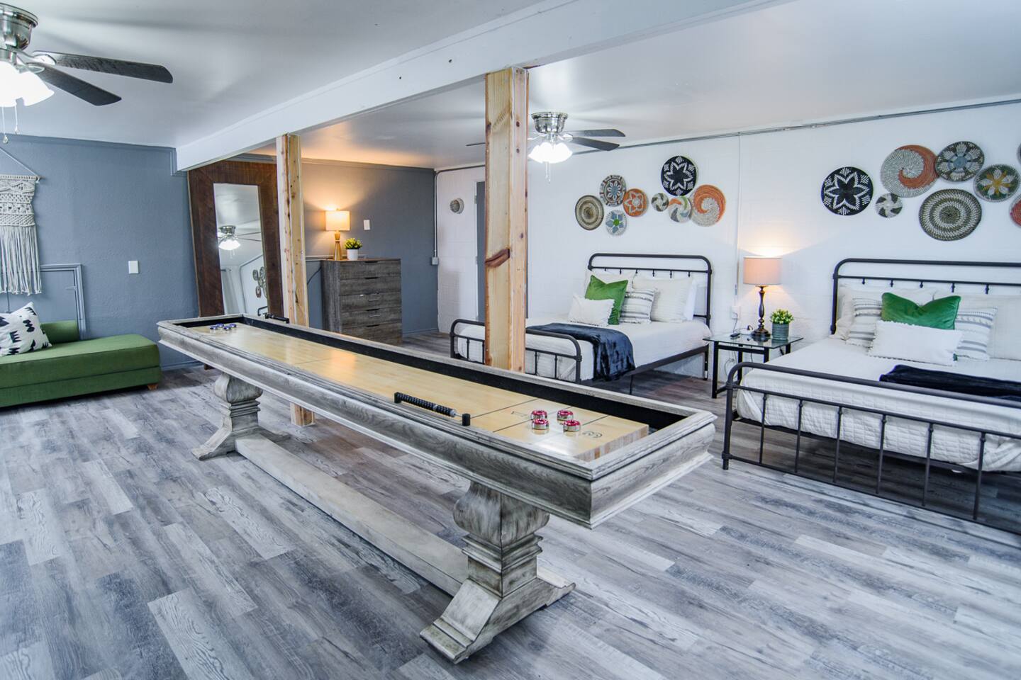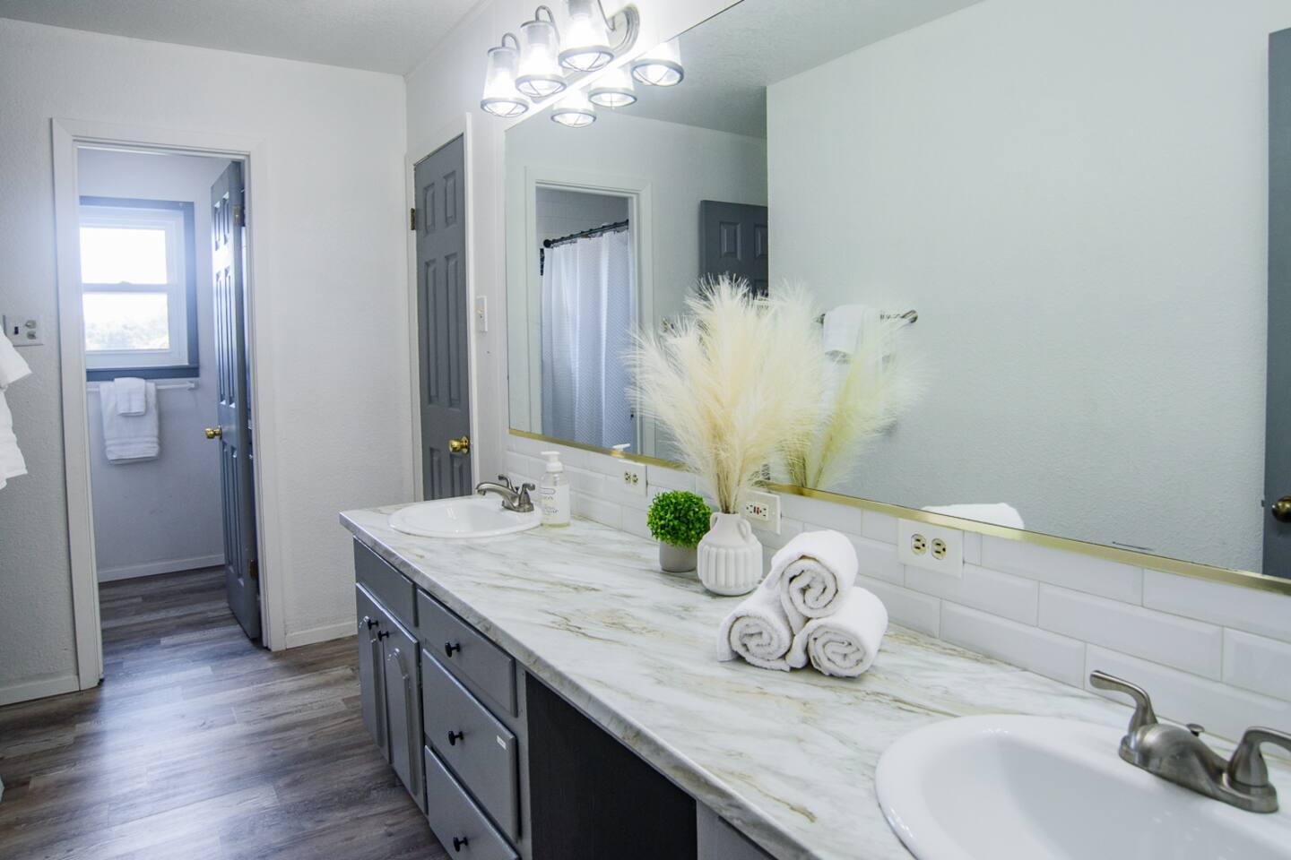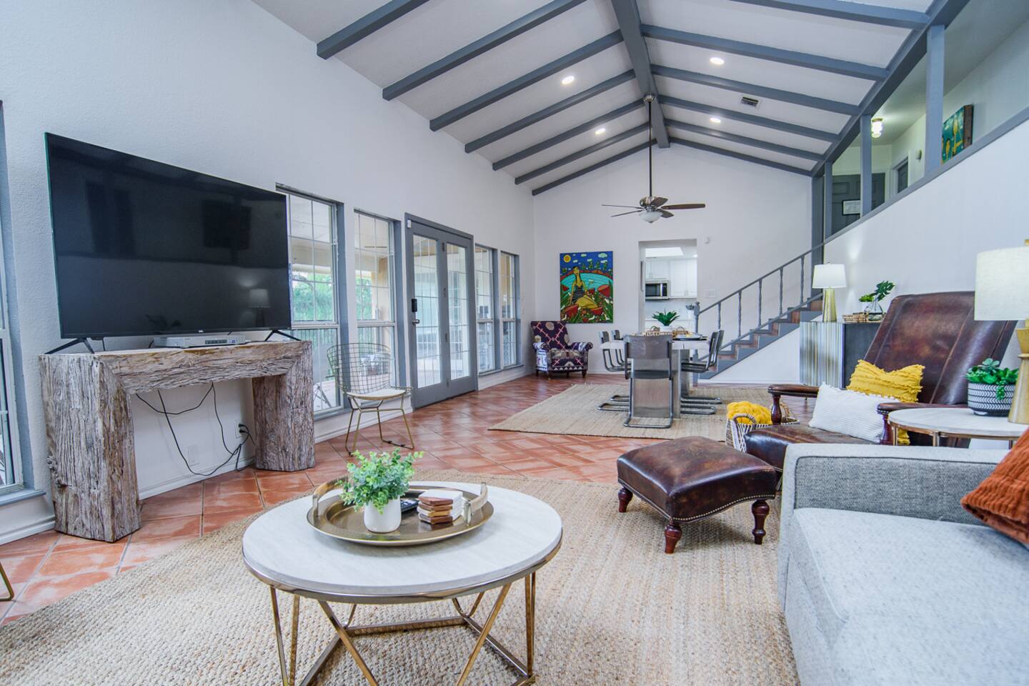 Welcome to Turtle House – Your Lakeside Escape in Seguin, Texas *** Property is currently at listing pictures river water levels (2-5ft) while the dam is being repaired. Dam will be completed and back up to lake levels around July 2025! *** Escape to the serenity of Turtle House, a stunning, contemporary vacation retreat located on the tranquil shores of the Lake Placid-Guadalupe River water system in Seguin, Texas. With over 3,500 sq. ft. of luxurious space, this expansive home is designed for relaxation, adventure, and unforgettable moments with loved ones. Spacious & Inviting Step inside to find an open-concept living and dining area, flooded with natural light, offering the perfect space for both intimate gatherings and lively family moments. The fully stocked kitchen ensures meal preparation is a breeze, and with a full-size washer and dryer, convenience is never far away. Relax & Reconnect Outside, unwind on the large back porch, where you can sip your morning coffee while watching the sunrise or enjoy an evening cocktail as the sun sets over the Guadalupe River. Hammock chairs beckon for a peaceful afternoon nap, and the fire pit invites you to roast s’mores under the stars. Fun for All Ages The Turtle House game room is an absolute hit for families! From friendly games of pool and shuffleboard to classic arcade favorites, there's something to entertain everyone. Kids (and adults alike) can create lasting memories, whether playing a round of shuffleboard or enjoying our vintage arcade game. Waterfront Paradise Step outside and experience a slice of paradise on the water. The back deck and upper balcony provide breathtaking views of the Guadalupe River, perfect for watching the ever-changing hues of the sunset. Dive into the peaceful river, perfect for wading, floating, and water sports. Kayaking, paddleboarding, and fishing await right at your doorstep. The river is known for its excellent fishing, with species like bass, blue cats, and channel cats populating the area. Easily access the water via the boat ramp on the adjoining property, where you can launch kayaks, paddle boards, and other water toys. The shallow, slow-moving waters (averaging 2-5 feet) are ideal for relaxing on the water and enjoying the natural beauty of the river. Please note: Water levels in the area are currently lower due to repairs on the Lake Placid Dam, but the setting remains perfect for water activities and enjoying the peaceful flow of the river. Pictures reflect current water levels. Room for Everyone! With 5 spacious bedrooms and a game room, there’s room for everyone to rest and recharge: Master Suite: King Bed, TV, and an en-suite bathroom for your ultimate comfort and privacy. Second Bedroom: Queen Bed with an attached Jack-and-Jill bathroom. Third Bedroom: Queen Bed with TV and attached Jack-and-Jill bathroom. Fourth Bedroom: Queen Bed, perfect for a peaceful night’s sleep. Fifth Bedroom & Game Room: 2 Double Beds, TV, Shuffleboard table, arcade game console, and a full-size pool table, plus an adjoining laundry area. A Perfect Getaway Whether you’re here for an adventure-packed weekend or a relaxing retreat, Turtle House offers everything you need to unwind and enjoy the beauty of nature. Please note that the property features several staircases and a steep drop-off from the dock, making it less suitable for toddlers or those with mobility concerns. Come experience the peaceful charm of Turtle House – where adventure meets relaxation in a gorgeous lakeside setting. We can’t wait to host you!